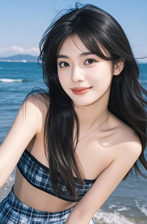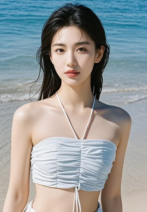 美女凝视远方,侧脸美得像被薄雾轻抚过的山线!