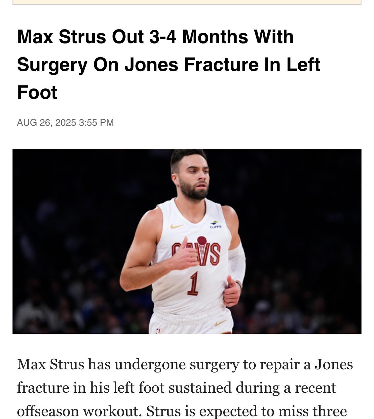 斯特鲁斯接受手术预计缺席3-4个月! 据记者透露:斯特鲁斯接受了手术,以修复在最近的休赛期训练中遭受的左脚第五跖骨骨折,预计将缺席三到四个月。 斯特鲁斯上赛季在骑士出战了50场比赛,场均上场25.5分钟,得到9.4分,4.3篮板和3.2次助攻。 在2023休赛期与骑士签订了一份四年,6300万美元的合同,目前还有两个赛季。 斯特鲁斯定位是一名3D侧翼型球员,擅长防守,还有三分投射,具备大心脏属性,在关键时刻敢于出手,是骑士外线核心拼图,但是季后赛的稳定性需要提高,今年季后赛的第二轮面对步行者投出了9中0的表现,全场0分,最后被4-1淘汰出局!#NBA# #骑士# #NBA骑士队# #NBA热点# #NBA睿闻#