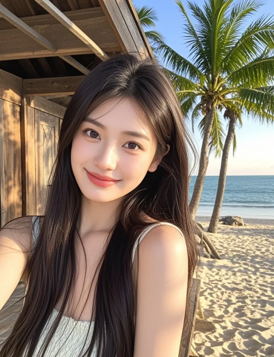 咔嚓!海天作背景,你给这自拍打几分?