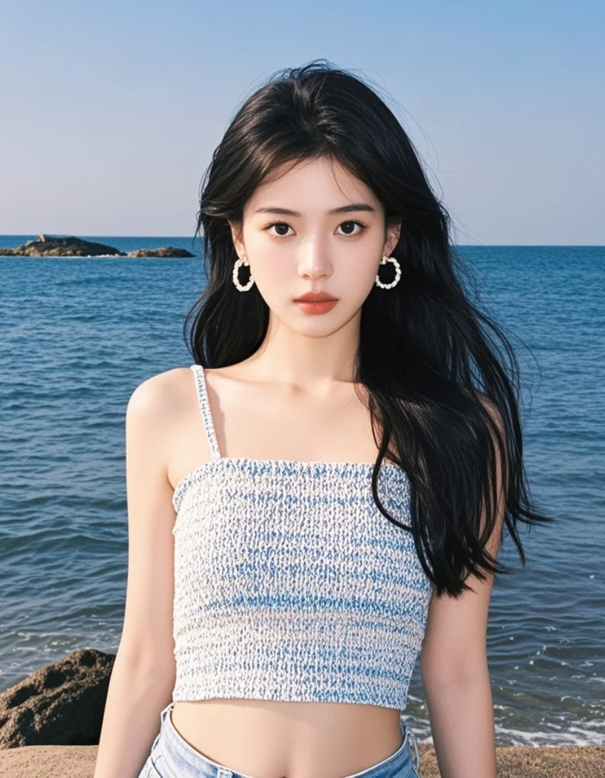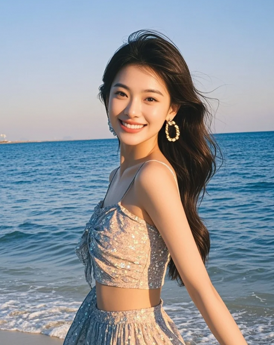 潮汐低语,诉说着她眼中闪烁的无尽遐想