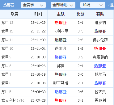 · 交锋记录:对热那亚优势明显,历史交锋10胜7平3负。