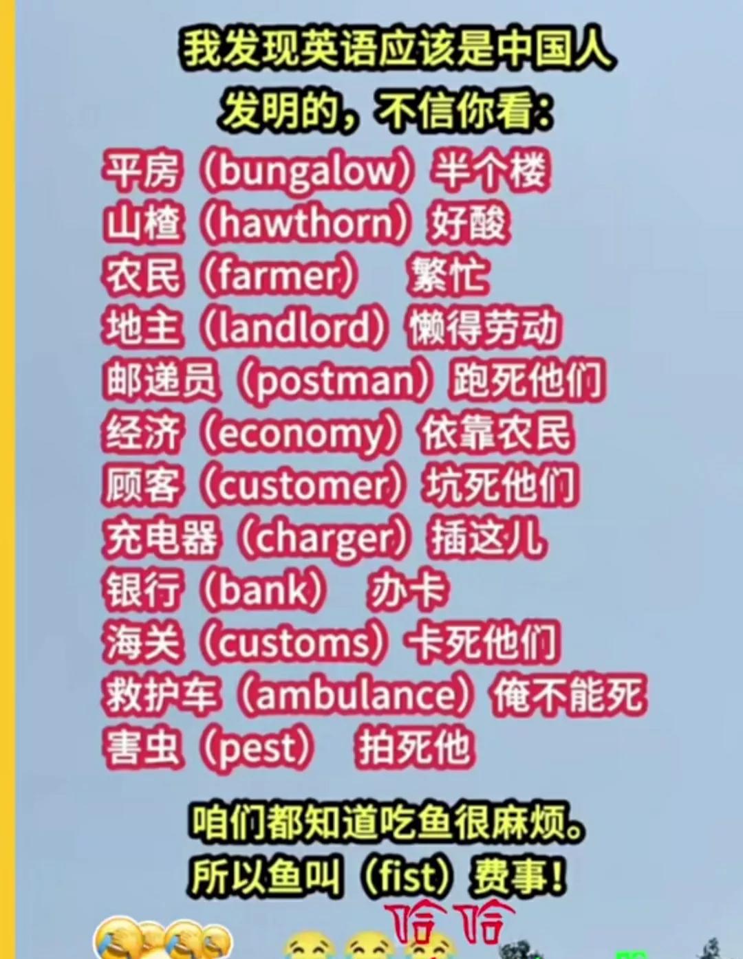 有人说,英语是汉语的一种方言,这个很有可能,听听“妈妈”的发音,几乎一模一样。