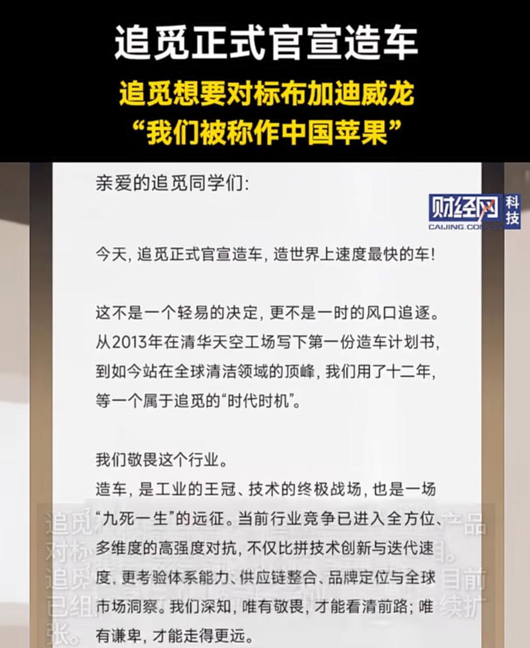 在新能源汽车市场已进入淘汰赛的当下,一个“扫地的”却官宣下场造车,瞄准的还是超豪华电动跑车领域,首款产品直接对标布加迪威龙,计划后年亮相…… 昨日,追觅科技官宣造车,确实让不少人感到意外。虽然追觅在智能清洁领域很强,有一定的电机技术(如高速数字马达技术)和ai积累,也有一定全球化基础(业务遍及全球100多个国家和地区),但是靠追觅每年二十来亿的净利润以及技术、市场积累和创始人的“极客”精神可玩不转汽车行业…… 不过,据报道,早在今年1月份,追觅就已注册了造车主题“星空计划(上海)汽车科技有限公司”,已拥有近千人的造车团队,说明其造车工作早已开始。 考虑到那些完全门外汉都敢下场造车,追觅下场好像也没啥奇怪的……