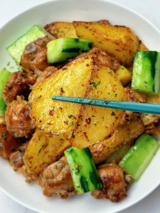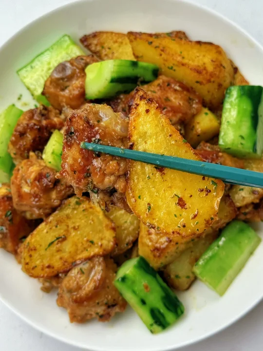 土豆外焦里糯,鸡翅焦香,一嗦脱骨,搭配清爽的青瓜,口感丰富,一点都不油腻!做法简单,你也赶紧试试吧[蹲后续H]