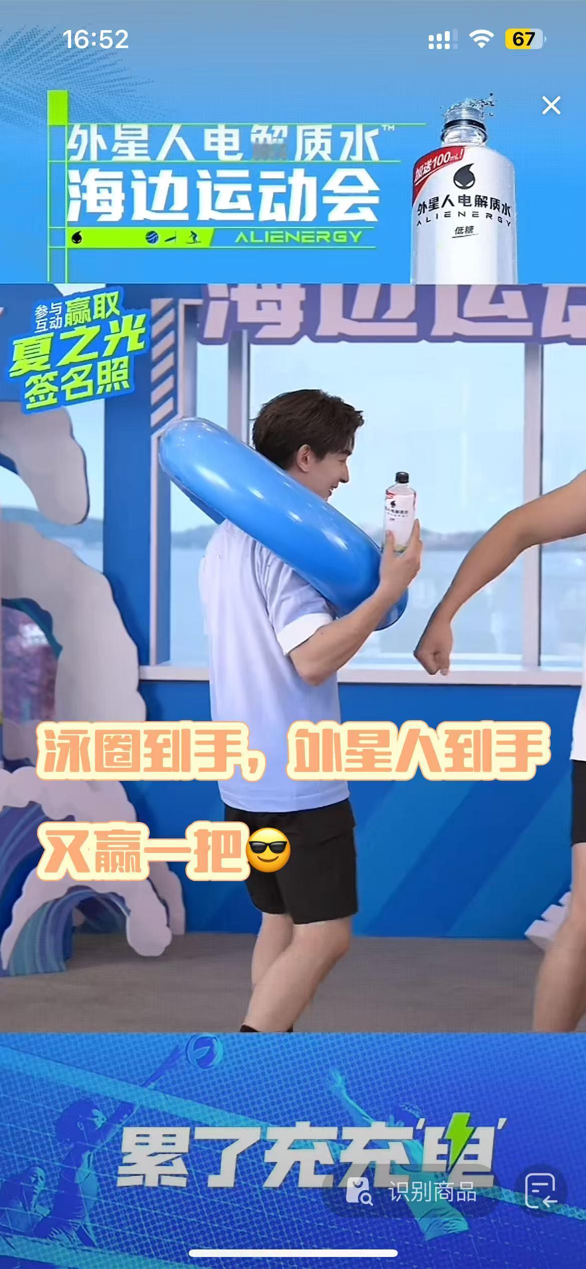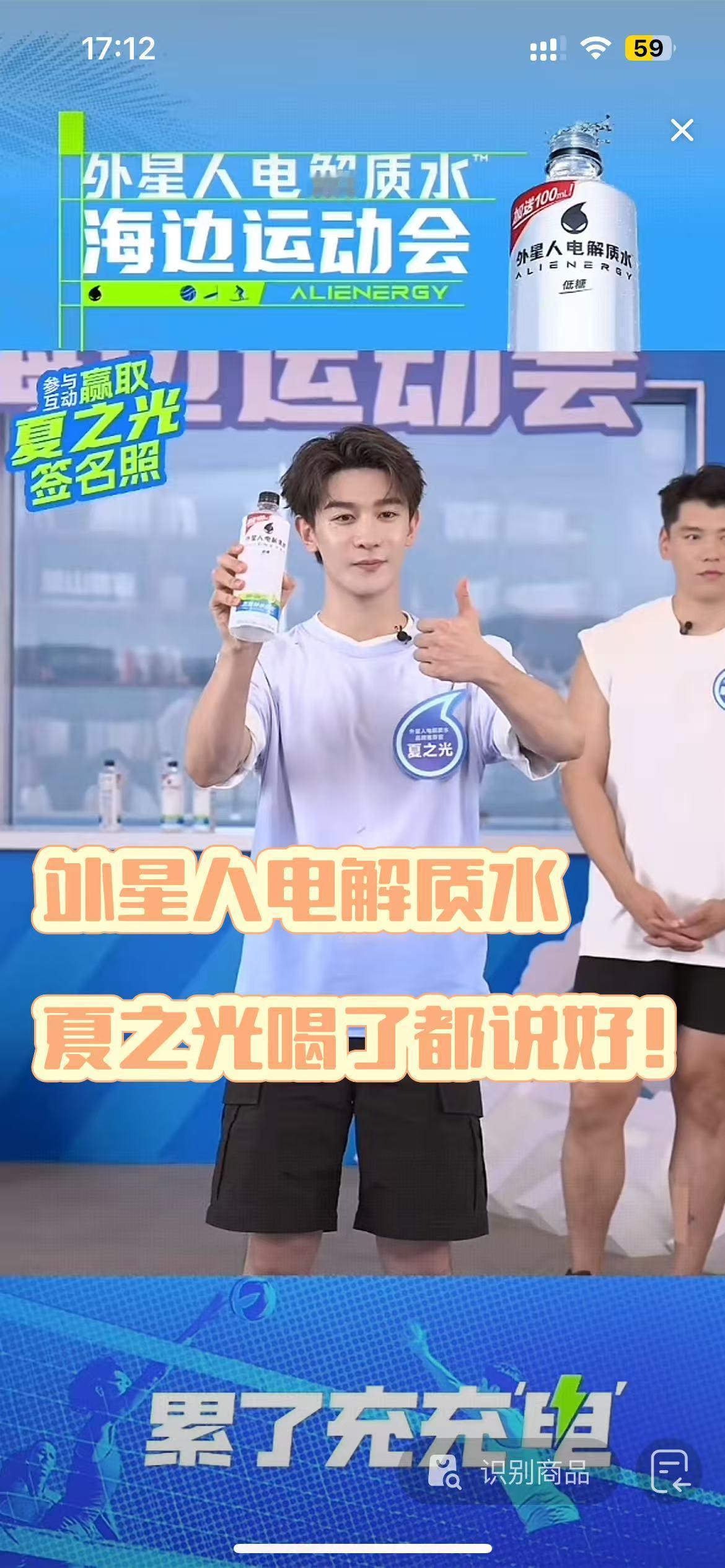 夏之光带你体验打工人の奇幻下班日常!下午刚结束外星人海边运动会,晚上立马转场自律模式~海边开合跳波比跳暴汗套餐已启动!别小看这几个动作,汗流得像刚淋过雨,还好有充“电”搭子——外星人电解质水!三效补水配方直接拿捏电解质+葡萄糖+烟酰胺B族维生素的黄金三角,北体大认证果然不是盖的!低糖青柠味一口清爽,累了充充电来瓶外星人,感觉还能再跑2km怎么回事!运动 运动饮料 电解质水 累了充充电来瓶外星人 外星人电解质水 下班运动电量百分百