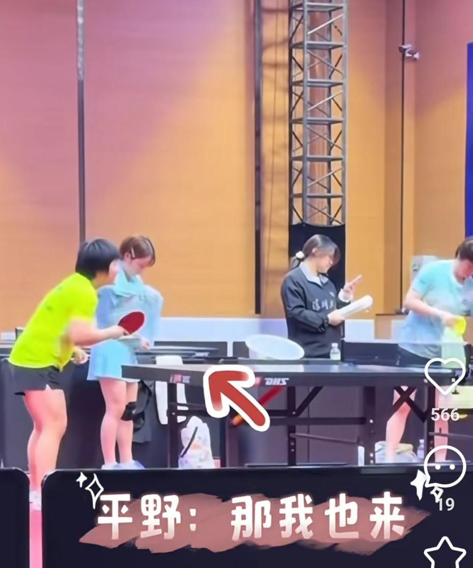 平野跟着小曼姐学换衣服。 蒯曼又在训练馆里换衣服了,这换的很丝滑啊,平野美宇看到