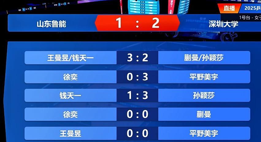 这场深大赢不赢就看蒯曼了! 鲁能赢不赢就看徐奕了[大笑] 深圳大学对阵山东鲁能, 深圳大学的排兵布阵我看要见效了[大笑] 第一局没想到输, 第二局没想到赢, 第三局肯定赢, 第四局赢的面大[大笑] 如果蒯曼赢了, 那深大就赢了。 深大赢的功臣, 不在孙颖莎, 也不在蒯曼, 而在平野美宇[大笑] 如果徐奕赢了, 那鲁能肯定赢了, 因为平野美宇肯定打不过王曼昱。 各位看官, 我说的对不对[大笑] 看接下来的比赛吧!