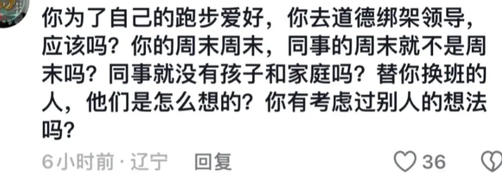 张水华你哭啥?该哭的是同事,她是361签约的马拉松运动员,年参赛量20-30场,靠着与同事换班挤出来周末时间干的副业收入已经是主业收入的很多倍了,调休意味着每周都有同事要超负荷上班。 看下她比赛的频率,一个月也才4个周末,假设科室每人每月能休1个周末,她这么搞,相当于自己休了2-3个周末,意味着她的同事有人一个月连一个周末都休不了,人家没有家庭孩子朋友的吗?