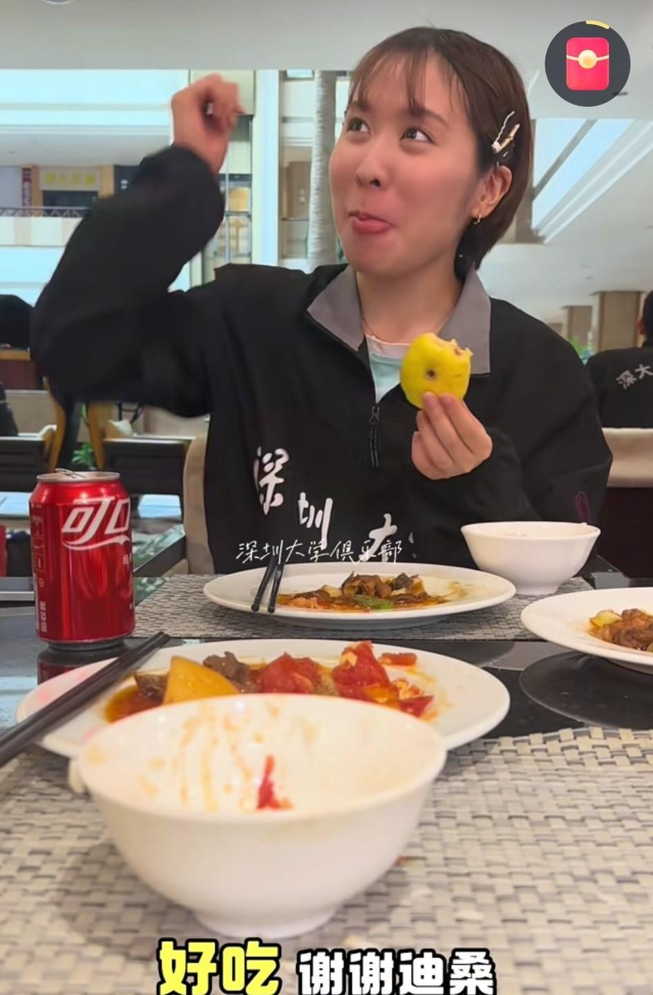 平野来乒超来对了,看多开心。 大迪对平野也很好,吃饭的时候碰到平野美宇,还把她买的新疆无花果让平野尝一下。张成教练在那翻译,大迪跟张成说别让平野给拍碎了,这个很甜,好吃,平野美宇有的中文能听懂,会说一点点,但是还是需要翻译的。平野用手拍了一下,然后拿起来尝了一口,张成问她好吃不好吃,平野美宇用中文说:“好吃”。听到大迪说她刚买回来的新疆无花果很香,有好吃的就拿出来分享,平野刚来打乒超时,大迪还请平野喝奶茶了。 大迪的性格好,跟外协球员的关系也好,等着乒超的比赛结束,大迪应该也会分享在新疆吃的美食吧。今天上午华东理工的比赛,大迪没有上场,比赛结束,大迪估计和李雅可她们一起回北京,很快就是澳门冠军赛,大迪加油哦! 确实,还是乒超的氛围比较好,大家都玩的很开心,每到一个地方还可以品尝到当地的美食,快乐乒乓真好!