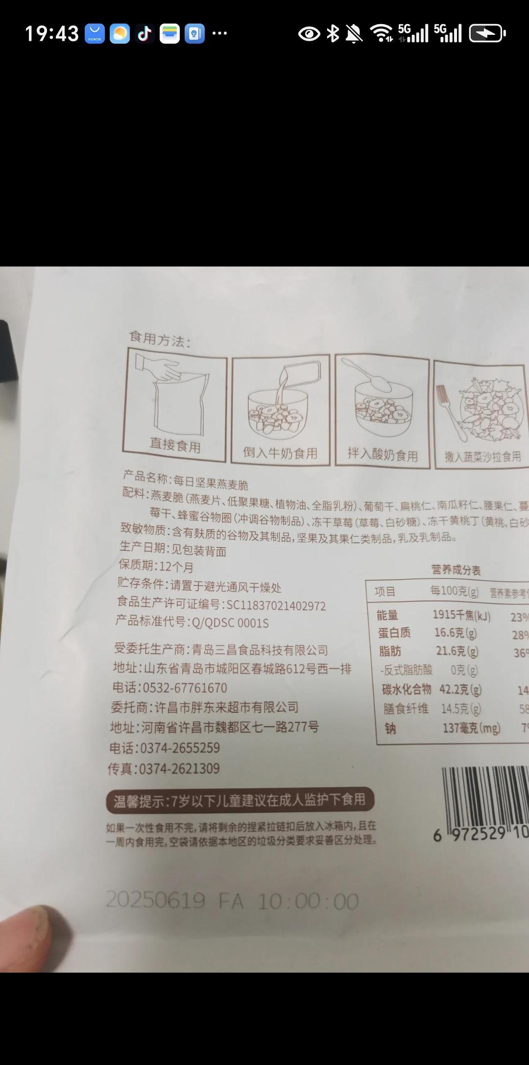 有意思了!近日有网友举报,永辉卖的燕麦脆没有生产日期。这款在永辉买到的产品,上面