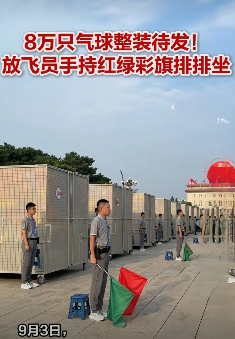 难怪找不到80000个气球,原来它们都藏在这里了! 只要观看了今天仪式的朋友,想必会对后面释放的80000个气球,有着很深的印象吧。 我一直在琢磨,那么多的气球,在释放之前到底要怎么管理呢?要想完善的管理,得需要多少人呢? 因为大家都知道,平时参加婚礼上也就是百十来个气球,大家为了布置还弄得手忙脚乱地,这一下释放80000个气球,困难程度简直无法想象啊。 直到我看到了下面这一幕,我释然了,大家的智慧真叫绝啊。 原来现场安置了很多柜子,所有的气球都井然有序地放在里面,现场人员用棋语交流,等接到释放的指令后,大家再依次释放,这样一项难度巨大的工作,就圆满完成了。