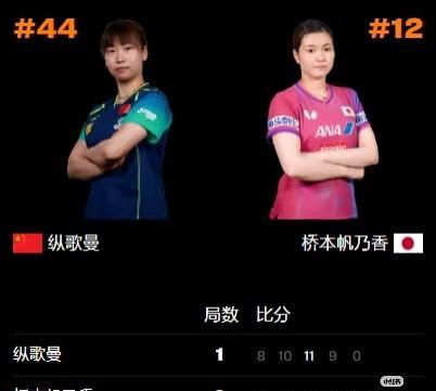 纵歌曼有进步,至少拿下来一局。 今天女单1/16决赛,纵歌曼是1-3输给了桥本帆