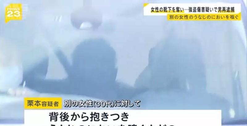 大阪男子跟踪强脱女性袜子被捕 9月5日日本关西媒体《MBC新闻》报道:大阪府警察调查第一课以涉嫌抢劫伤人罪,在大阪府泉南市逮捕了一名无业男子栗本晃来(23岁)。 据警方称,8 月 15 日晚,嫌疑人栗本晃来持续跟踪一名20多岁的年轻女子1.5公里,约20分钟。一直到大阪一处公园步道上,这名女子突然被栗本晃来从身后抓住双脚踝,导致她摔倒,然后强行脱掉她的袜子逃离现场,袜子被带回家。女子的膝盖和肘部受了轻伤。 嫌疑人栗本晃来还于今年8月因突然从后面抱住一30 多岁女子嗅闻她的颈部,涉嫌猥亵。 警方在栗本晃来的家中发现了收藏在带拉链的塑料袋中的袜子。 案发现场附近的监控摄像头,也显示女子被栗本晃来持续跟踪的图像。 嫌疑人对警方问讯供认不讳,被正式逮捕。