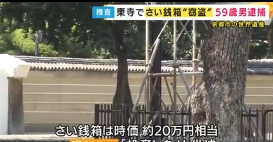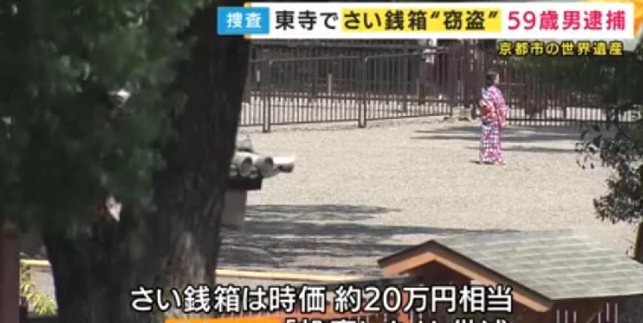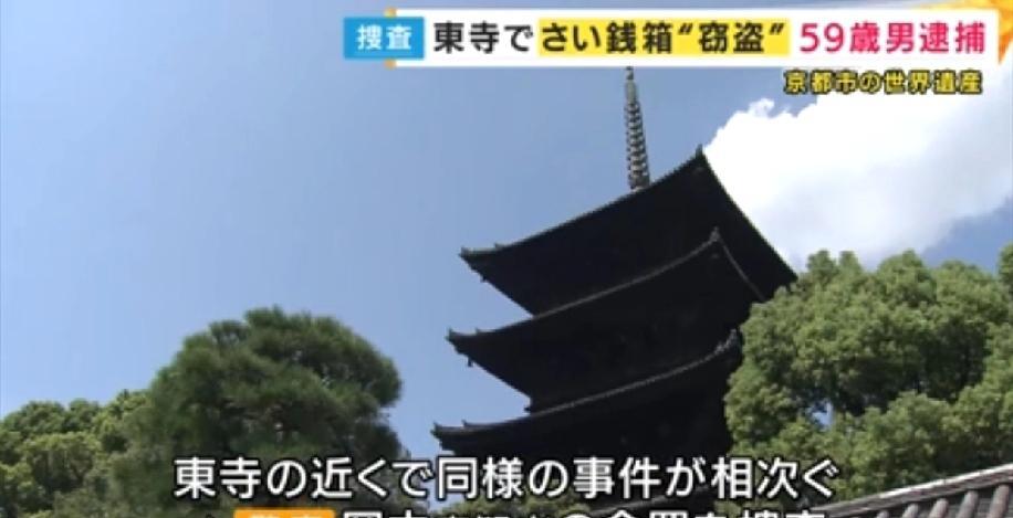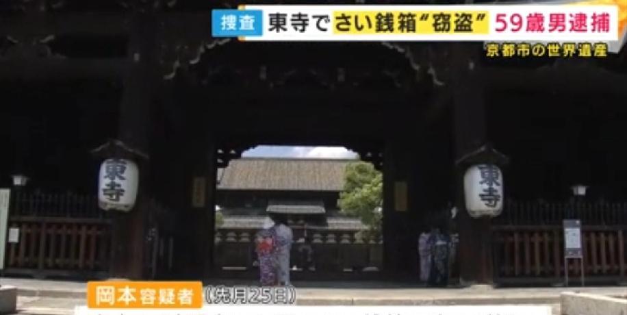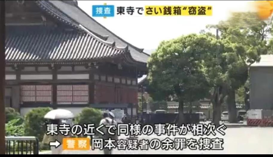 京都古老寺庙功德箱被偷后扔了 日媒《关西电视》9月5日报道:放在世界文化遗产京都市东寺毘沙門堂前的功德箱8月25日被偷。偷走功德箱的京都市下京区的一无业人员岡本正男(59岁)于今日被捕。 据警方称,附近的监控摄像头显示一名男子将功德箱放在自行车后座上逃跑,岡本正男在被调查时承认了指控。 功德箱本身价值约20万日元(约9600元人民币),但岡本正男说他已经扔掉了。 里面的现金数量未知。 东寺附近的其他寺庙也接连发生功德箱被偷走事件,警方正在调查岡本正男是否有其他嫌疑。