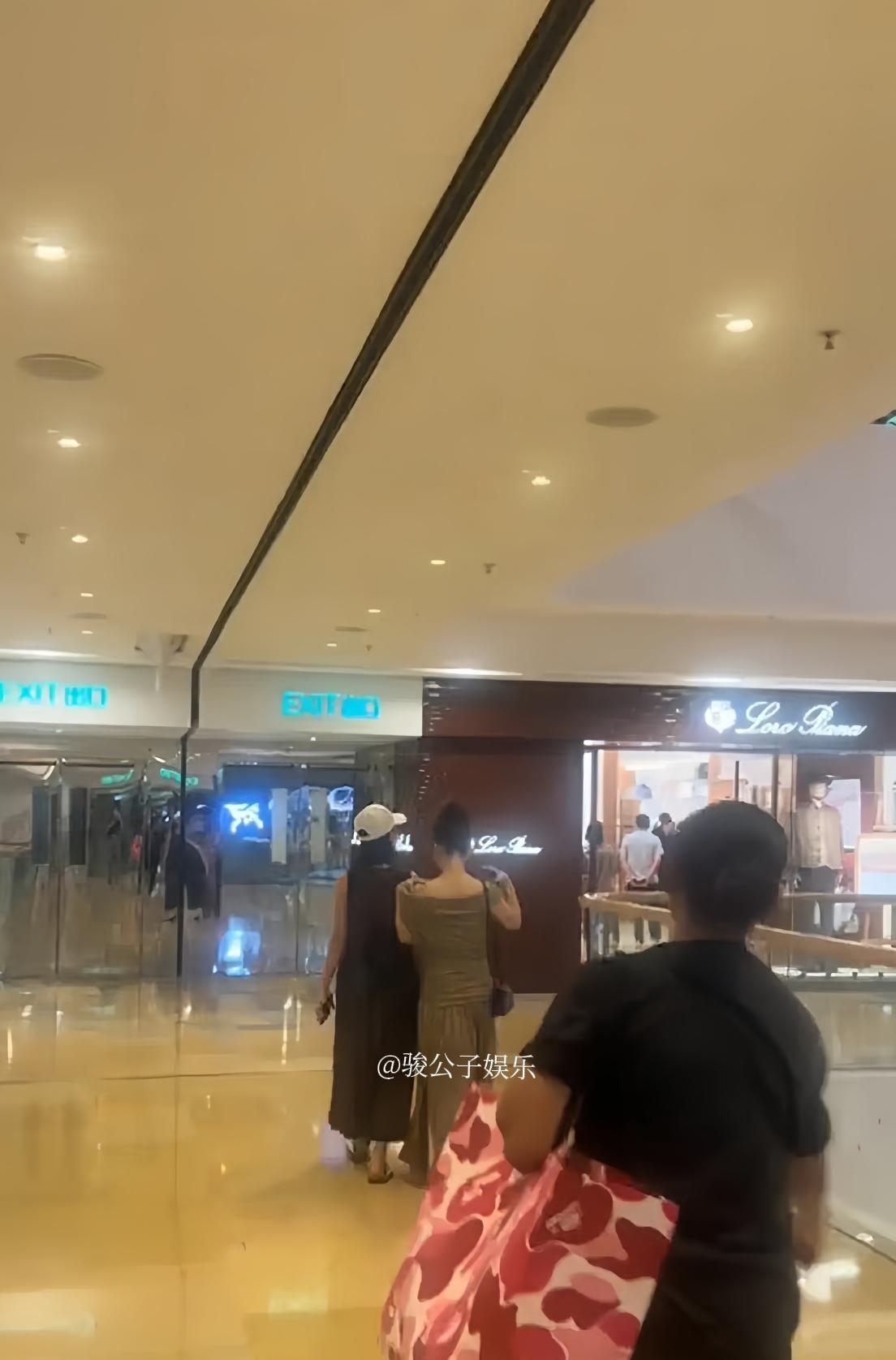 方媛在孕晚期穿着高跟鞋与闺蜜一同逛街,她身着芥末色连衣裙,笑容满面,气质优雅而时尚。身后的菲佣背着物品,还小心翼翼地跟在身后,确保她的安全。