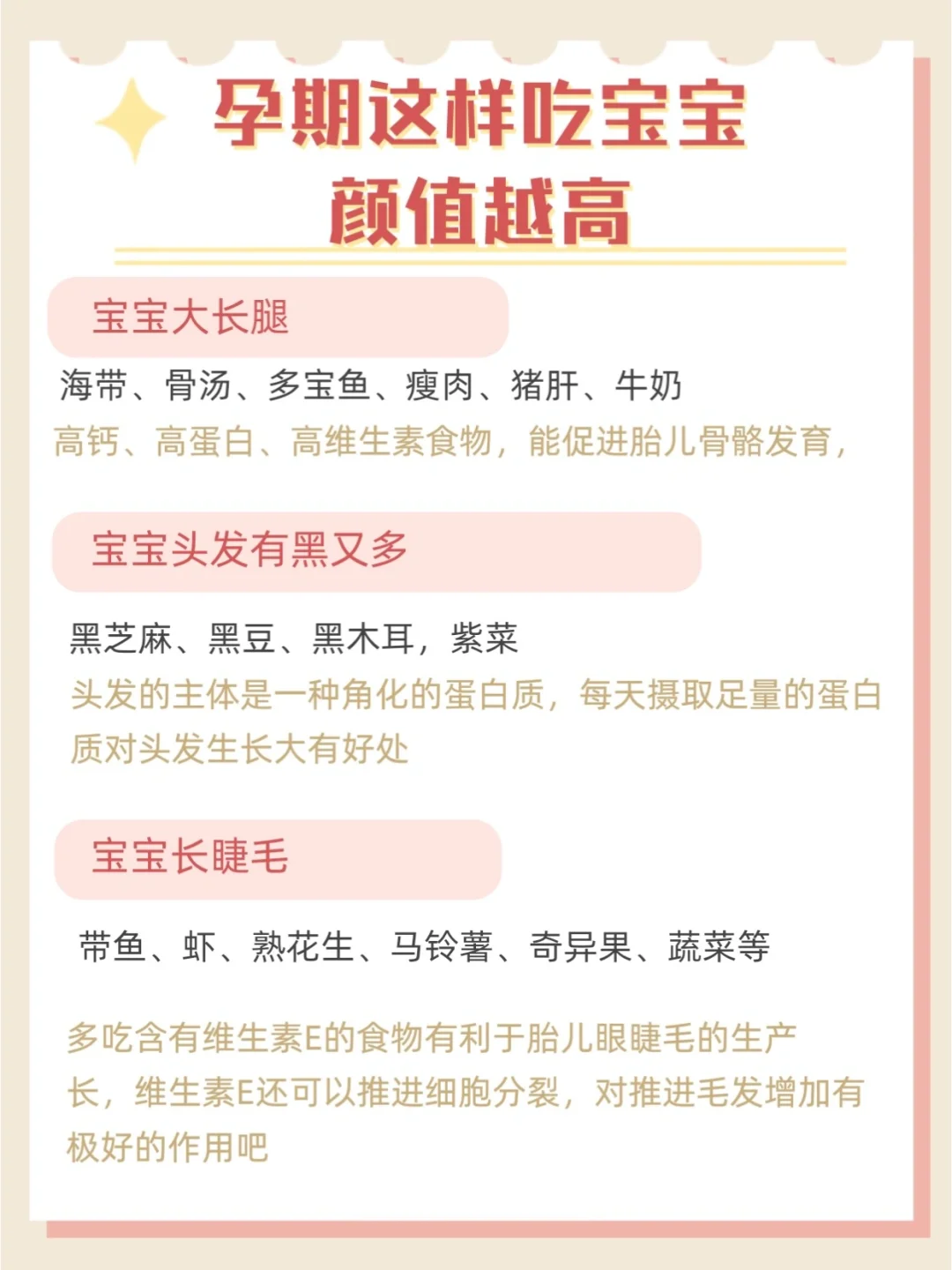 👼虽然宝宝的颜值,通常主要是由父母的基因决定的,父母的基因决定了宝宝的颜值,但是后天孕期饮食调理,也可以使宝宝的皮肤等各方面更好!