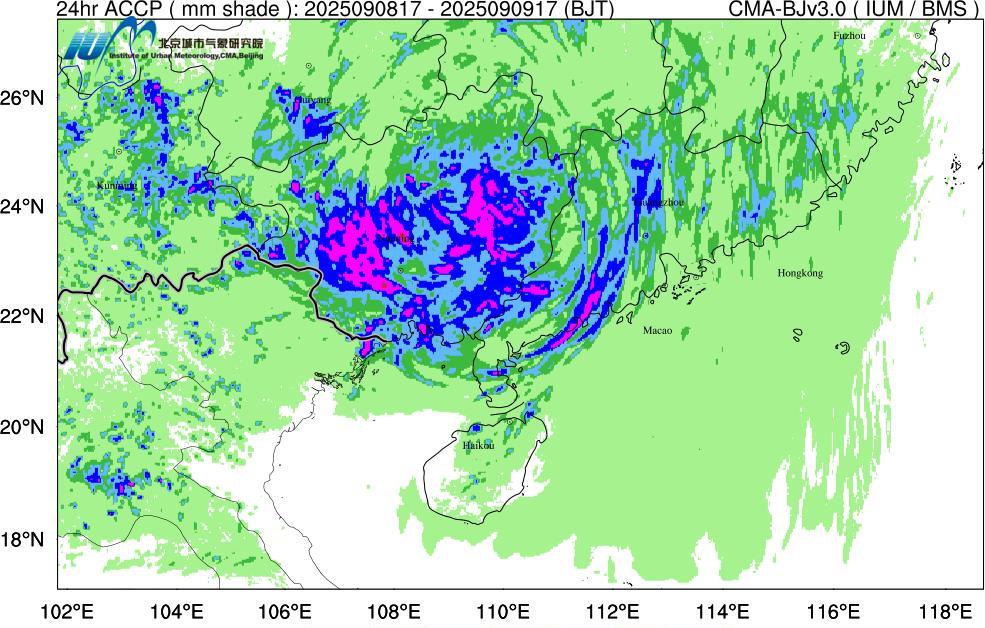 台风“塔巴”超预期偏北,广西将出现大范围大暴雨局地特大暴雨 今天上午,台风“塔巴”登陆广东江门台山,而后路径有所偏北,致使肇庆、佛山等地风力超预期,在高要国家站出现10级阵风后,肇庆台于今天中午升级发布台风黄色预警。 当前台风“塔巴”环流中心已经来到广西梧州境内,主体降水正在影响广西中部和东部。根据最新的数值预报,预计今天傍晚到明天傍晚,广西中部和东部等地有大暴雨。中央气象台发布的预报中,广西中东部局地可能出现特大暴雨。需注意内涝、地质灾害等。