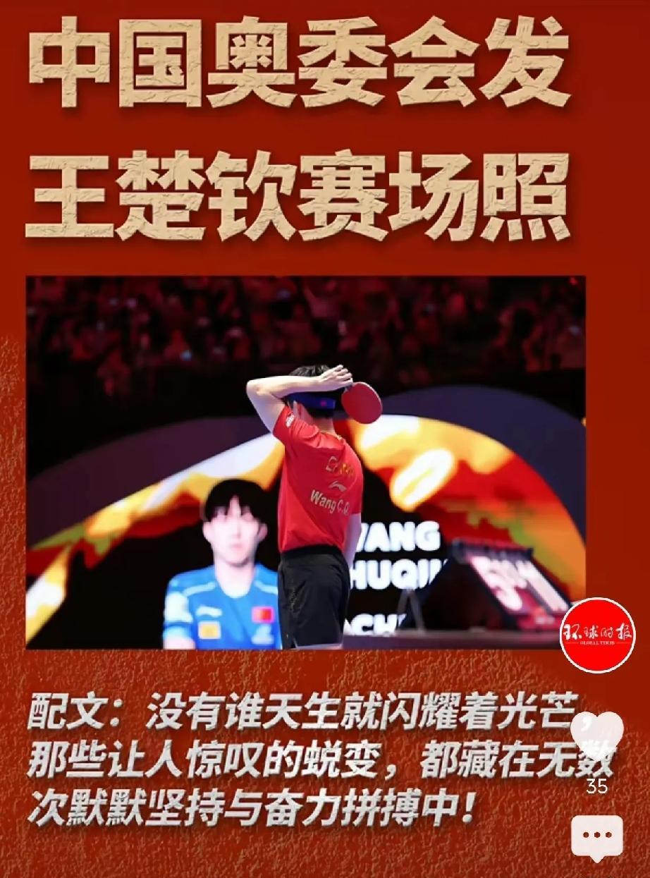 大头赛前一个人静坐, 训练的汗水和疲惫还在脸上, 他已经进入对比赛的思考! 其实昨天对松岛辉空, 他把困难想的很具体, 闭着眼睛脑子却在放电影, 一个动作一个动作地慢放, 一个技战术一个技战术地解构, 一个困难一个困难地准备, 然后走上只有他一人的半区, 迎接属于他的挑战! 中国奥委会发了赛场照, 配文对王楚钦大加赞赏: 没有谁天生就闪耀着光芒, 那些让人惊叹的蜕变, #记录真实生活#