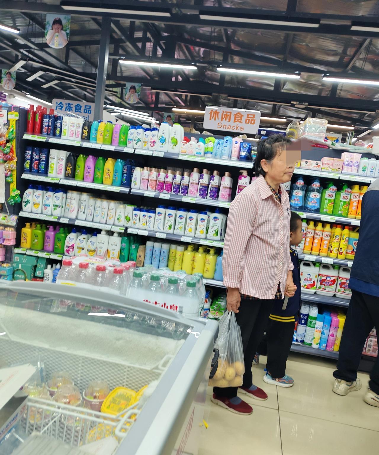 “脸都不要了!”9月10日,坐标西安。刚刚去小区附近的生活超市,目睹了一幕,一言难尽。 这个粉色的短发大妈领着孙子进店购物,土豆有优惠,大妈在店里转了一圈,买了一袋土豆,路过水果区,小孙子看见了香蕉想吃,大妈毫不客气的动手准备从香蕉串上掰一支,恰好被一个年轻的男店员看见了。 男店员丝毫不给大妈面子,大声呵斥:“干啥呢,脸都不要了,想吃就买,不要丢人现眼!”,被店员阻止后,大妈悻悻的离开走向收银台,男店员依然不解气,不停的嘟嘟囔囔,口吐芬芳。 哎呀,阿姨,你这是何必呢,一把年纪被一个小伙训斥,心里不难受吗?水果又不贵,不要总想占便宜,把小孙孙给教坏了,人在公共场所要自爱自重,要给自己留面子。