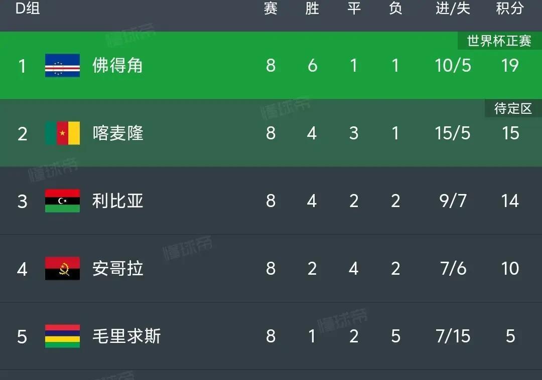 世预赛喀麦隆客场0:1爆冷不敌佛得角,下坠速度堪比中国男足! 昨天凌晨在世界杯非洲区预选赛一场比赛中非洲雄狮喀麦隆客场不敌佛得角遭遇一场败仗,在将对手推向小组首位的同时,自己不得不面临参加附加赛的窘境。 在世界排名中喀麦隆作为非洲老牌劲旅现排名第43位,而佛得角只排在第73位,按照双方实力差距来喀麦隆身价达到1.9亿欧元,而佛得角只有1400万欧元,还买不到姆巴佩的一只腿,然而就是这样一直“弱旅”将誉为非洲雄狮的喀麦隆摁在地摩擦,此战过后佛得角领先喀麦隆4分领跑D组,接下来佛得角的两个对手分别是利比亚和斯威士兰,只要他们拿下任何一个对手,我就可铁定杀入美加墨世界杯,而喀麦隆则要进入更为残酷的附加赛征程其实最为悲催的当属北京国安外援恩加得乌,来回跑了几万公里,国家队却是岌岌可危,这趟差旅算是白折腾了![作揖][作揖][作揖]