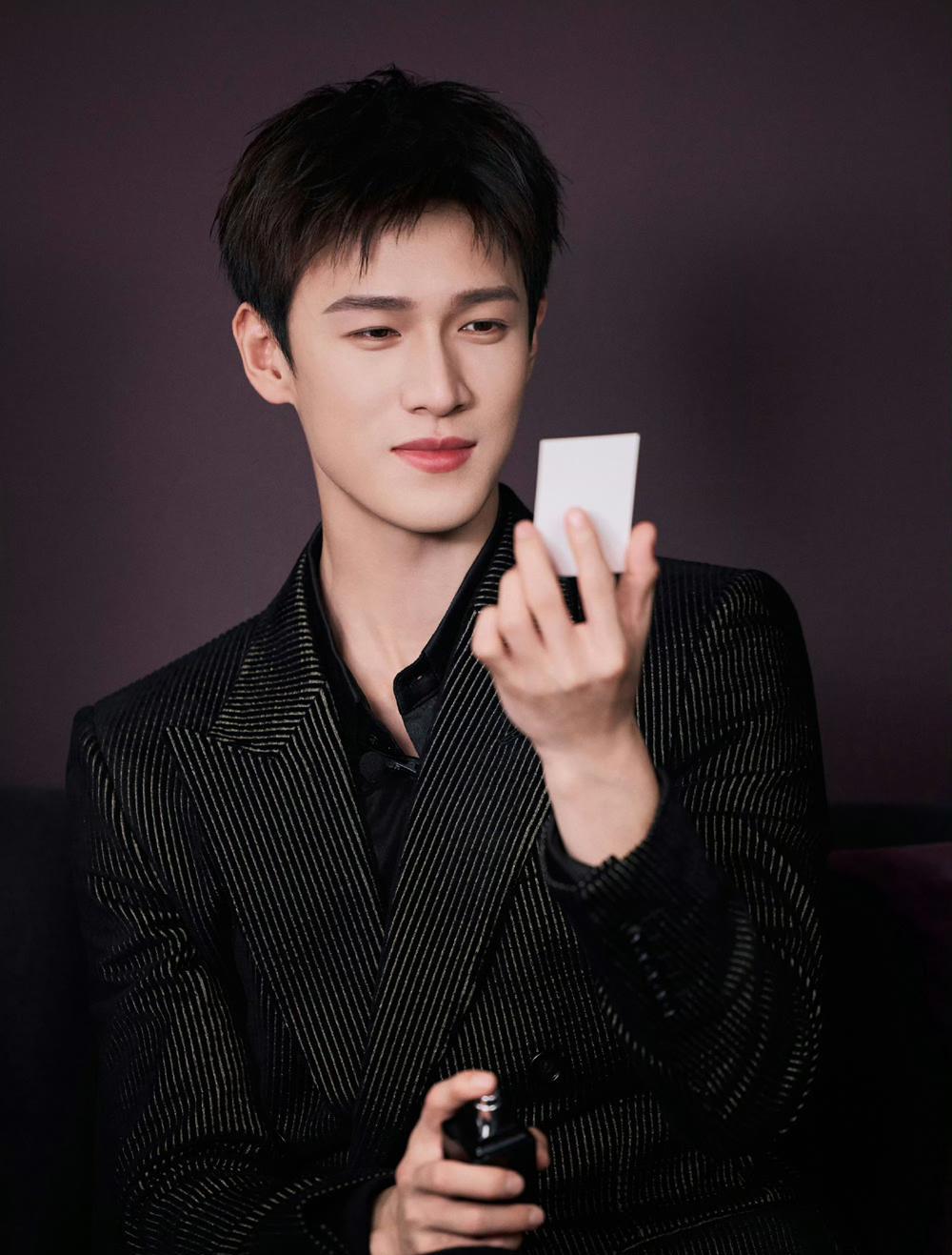 李昀锐黑西装缀着金丝条纹,剪裁利落又带华丽感,一出场就牢牢抓住视线。