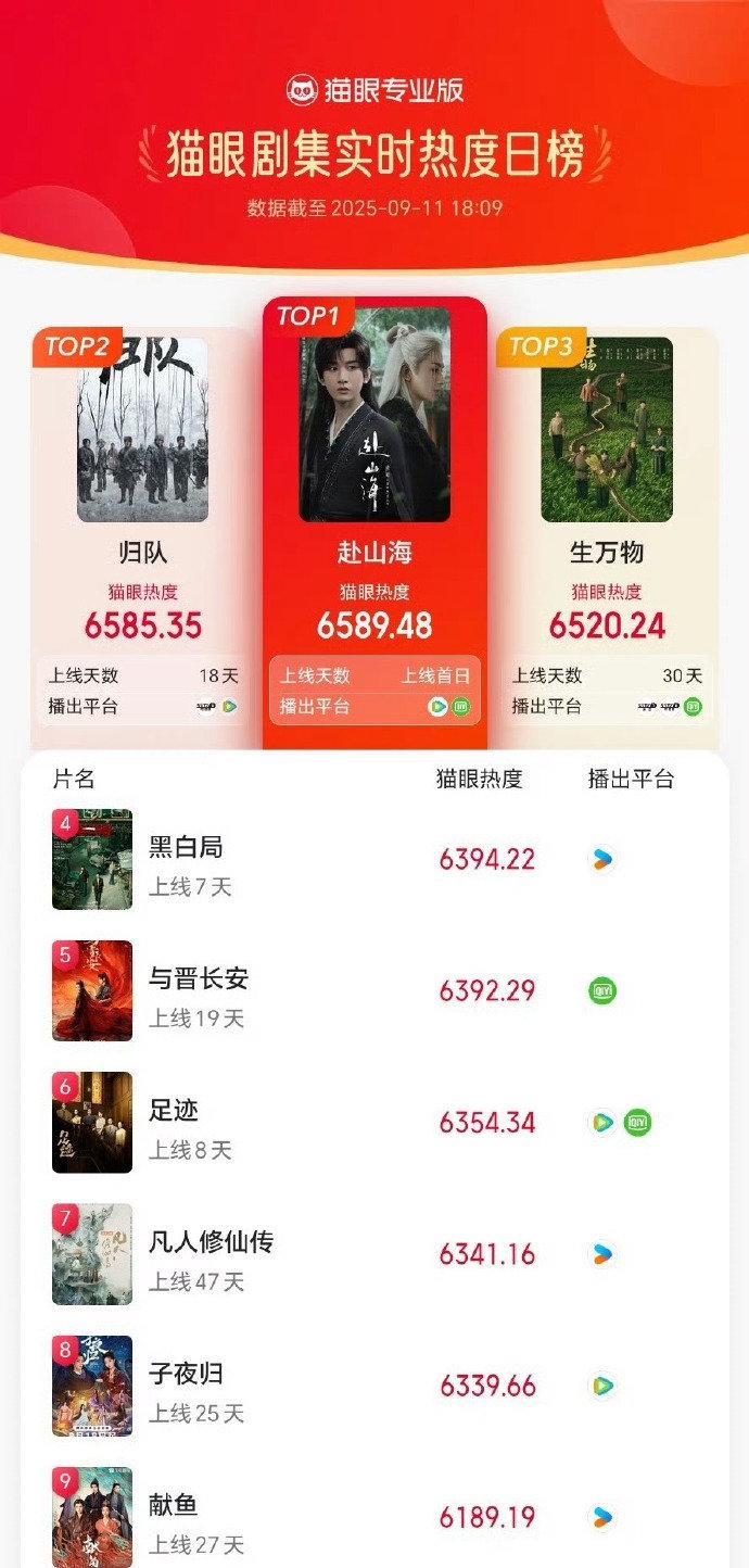 《赴山海》这热度太夸张了!在两个平台分流情况下,数据依旧亮眼。要是集中在一个平台,开播几分钟破万不是没可能,这热度简直要逆天了!