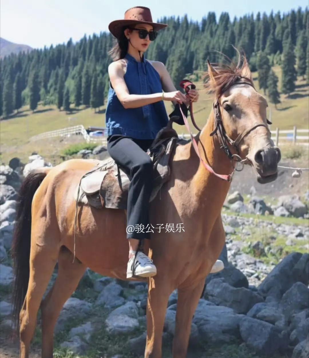 王皓老婆带儿子游新疆,38岁闫博雅骑马又美又飒,修长的双腿和纤细的腰身勾勒出完美