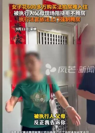 广东深圳,女子看到一套不错的法拍房,只需600多万,她毫不犹豫地拍了下来,结果遇到了麻烦事,她不但被原房主打电话威胁,原房主的父母还住在里面,拒不腾房,女子要求强制执行,原房主的父母却扬言道:要死也要死在里面。 女子早就想买一套房子了,她想买一套宽敞,布局又好,价钱还要实惠的房子,她要安居乐业,她要在这个繁华的大城市扎稳脚,好好奋斗。 终于她看到了一套法拍房, 这套法拍房真的深得她喜欢,房子布局好,够宽敞,够大,关键那里的位置真的很不错,交通方便,配套设施完善,离她工作的地方还比较近。 并且这还是一套法拍房,价钱要比别的房子便宜不少,看到这样的房子,女子心动了。 她毫不犹豫就拍下了这套房子,她要入住这样的房子,开始新的生活。 她原以为只要把房子拍下,把钱交完,把户过了,她就可以和家人在这套新房幸福地生活着。 让她没想到的是,轻轻松松拍下的房子,她还没来得及装修新房,她就接到了原房主打来的电话,原房主竟然威胁她,让她把房子给退了,不然的话,让她收不到房。 女子听着原房主那威胁的语气,这才意识到自己轻易得到的这套法拍房,是有麻烦的。 原来,房主和一个公司合作,但是他违约了,导致损失非常大,他的房子这才被拍卖了。 可即使被拍卖,他也拒绝腾房,他的父母更是守在房子里,拒绝把房子腾空。 女子这才意识到要入住新房,不是一件容易的事,首先要把原房主的父母请出房子。 可这一对老人,誓死也要捍卫自己的房子,坚决不让出,即使女子拿出所有的证件,他们也坚决认为这房子是他们的。 看着原房主的父母,女子又想起那威胁的电话,她真的不知道该怎么办。 这可是深得她喜欢的房子,她不愿就此放弃,于是她申请强制执行。 工作人员也来执行腾房,原房子的父母却扬言道,他们死也要死在房子里,他们拒不腾房,他们还说,他们什么都不怕。 看样子,他们是坚决不会搬出房子的,但是工作人员也不怕他们,他们依法上门强制腾房了。女子看到房子终于被腾出来了,她这才松了一口气。 她原以为她花了600多万元,会有无穷无尽的麻烦。先不说原房主的父母是如何阻挠不愿意腾房,单单他们打电话威胁,女子就已经感到非常烦恼了。 那是她真金白银买下来的房子,600多万也不算少,如果花这么多钱,还无法住上自己心爱的房子,她真不知道该怎么办了。 当然她也不怕,她既然拍了法拍房,她也是有心理准备的,现在房子终于腾出来了,她不怕原房主还会怎么为难她,那已经是她的房子了。 那女子该怎么处理自己所遇到的麻烦? 首先,女子已经拍下房子,房子已经是她的个人合法财产,任何人不得侵犯。 《民法典》第3条规定:民事主体的人身权利、财产权利以及其他合法权益受法律保护,任何组织或者个人不得侵犯。 只要女子已经把房子过户了,拥有房子的所有证件,那么她就可以申请强制执行,将原房主的父母请出去。 其次,这是一套法拍房,如果原房主一直阻挠,女子是可以要求强制执行腾房的。 《法院关于法院民事执行中拍卖、变卖财产的规定》第27条规定:人法院裁定拍卖成交后,应当将拍卖的财产移交买受人。被执行人或者第三人占有拍卖财产应当移交而拒不移交的,强制执行。 现在女子已经申请强制执行,原房主的父母还在阻挠,工作人员可以依法请他们出去。 本来女子已经拍下这套房,原房主父母的行为已经侵害了她的合法权益。 《民法典》第236条规定:妨害物权的,权利人可以请求排除妨害。 女子拍下房子,遇到原房主父母的阻挠,确实挺令人烦恼的,但只要房子已经属于女子的,女子就可以争取自己的合法权益。