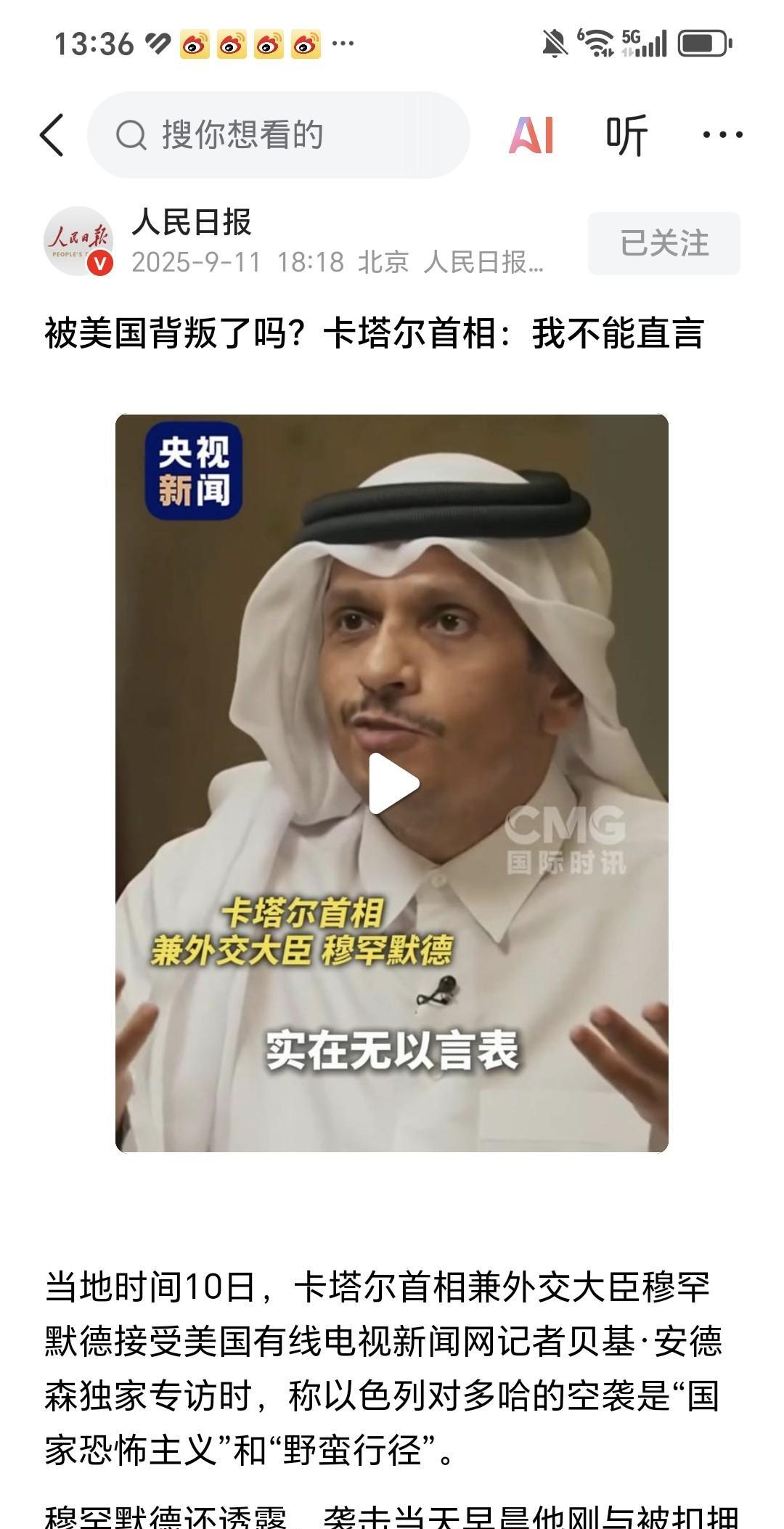 觉得卡塔尔是钱多人傻。 简单的哲理,鸡蛋不能放在一个篮子里,一碎就全碎了。 为了卡塔尔国家安全,美国的武器买,俄罗斯的武器买,欧洲国家武器也买,中国的武器更要买,东南西北四个方向,买四个武器生产地的防空武器,看一看比一比,哪一个国家的武器好,不得罪人且能发挥大作用。 美国得罪不起就多买点,但其他地方产的武器绝对不能不买,否则永远受制于美国。 这一次就是大好机会,卡塔尔有理由与美国谈判买美国外的防空武器。