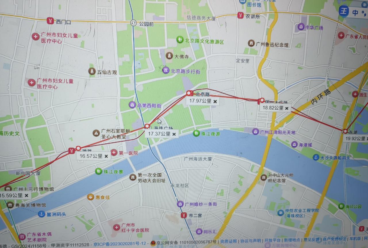 广州地铁6号线自制规划图 线路名称:广州地铁6号线 起止点:里河南路-莲峰岗 站点数量:39站(有15个换乘站) 总里程:47.6公里 最高速度:80公里每小时 车辆编组:4L