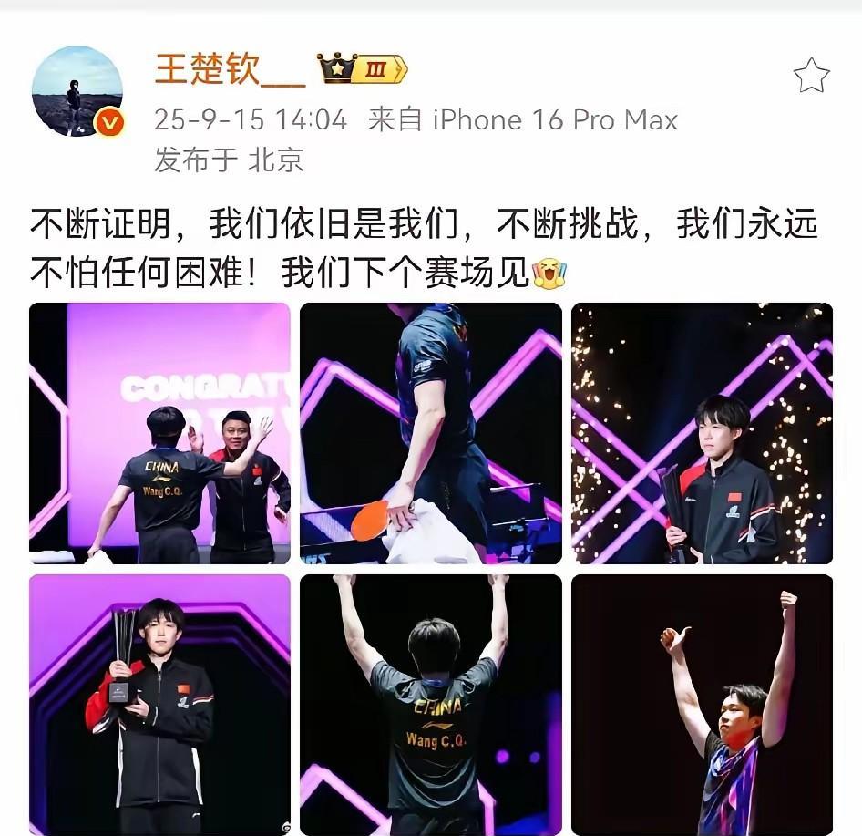 闫安直播间说了这样一句话,他说“王楚钦澳门夺冠,希望大家对他好一点。”这话某些人听着啥感觉。他输球你们骂他,他赢球还是被骂他。你们的嘴吃啥长大的呢? 德甲也在同一天说了这样一句话“跌倒也是一枚勋章!”可是对于王楚钦来说,跌倒不是勋章而是耻辱。不知道这种双标什么时候能结束。 王楚钦澳门夺冠看看国乒队的其他队友的反应,看台上队友集体起立,鼓掌祝贺。王楚钦面对队友伸出第一的手势。赛后袁励岑发文说“掌声会散去,奖杯会蒙尘。唯信念永驻。国乒始终在路上。” 王楚钦在用行动凝聚团队。队友也用行动回应。他一直强调我们,强调国乒队。难道这就是他飘了吗?他现在作为国乒队的扛旗着引领大家一起出发就飘了吗?难道他要自己玩的,自己快乐才不算飘吗? 我觉得王楚钦做得很好。