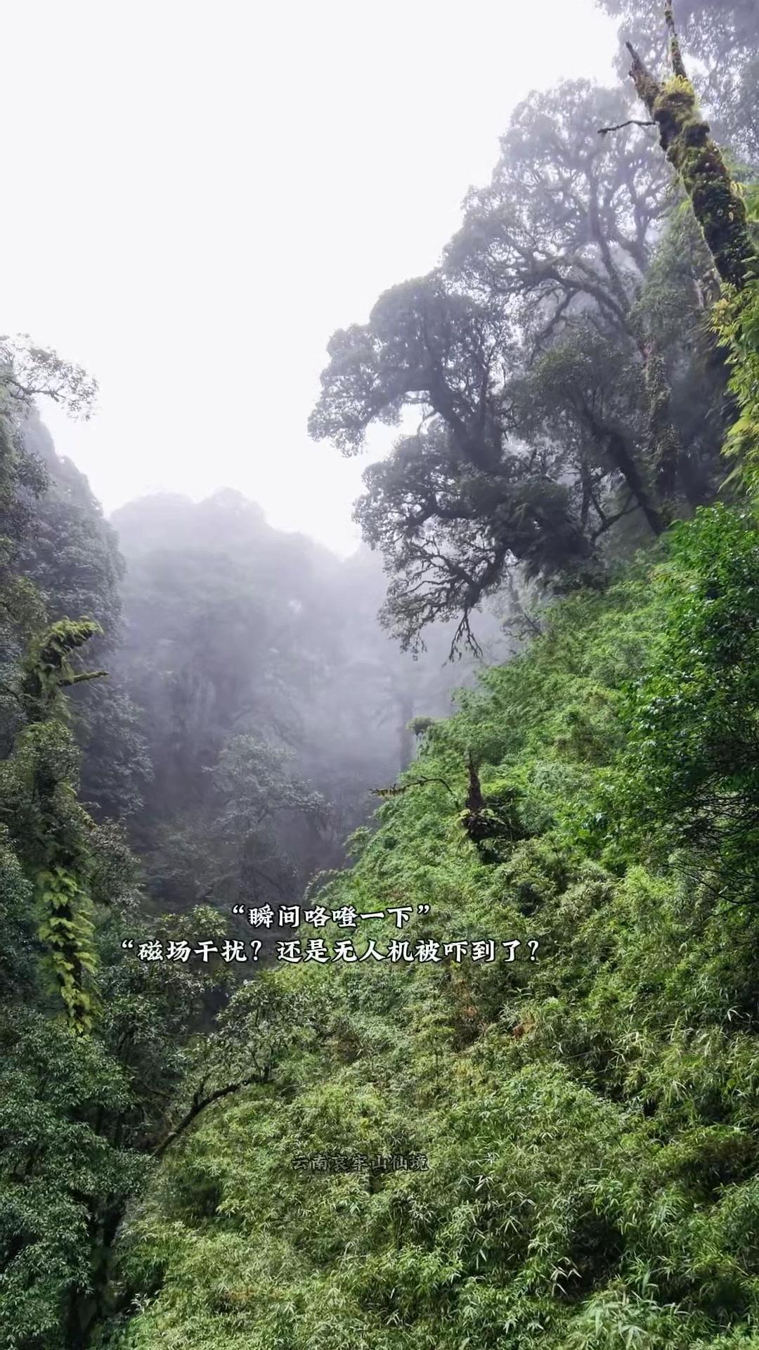 🌲哀牢山总被迷雾笼罩,像极了传说中的"生命禁地"。茂密的植被肆意生长,整个密林既充满野性生机,雾气弥漫林间,树木变得朦胧,营造出神秘又静谧的氛围,仿佛能感受到森林深处的古老气息。 🧭这里的磁场干扰似乎格外明显,连无人机都像是被吓到了,"瞬间咯唯一下"的声音让人有点发毛,更添了几分未知的惊险。