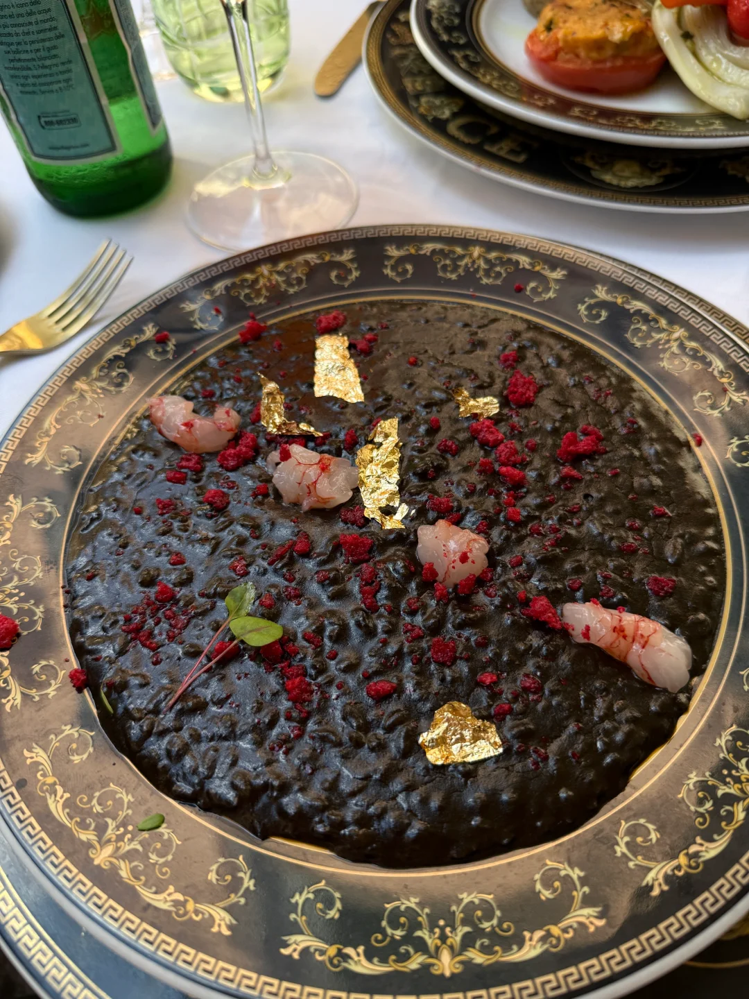 (就是图二这点缀着金箔的意大利经典的墨鱼汁炖饭 )