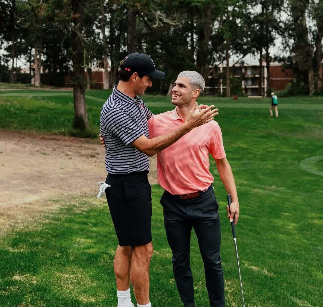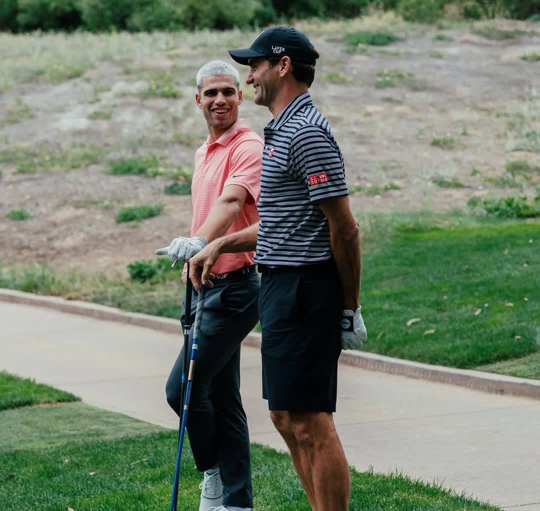 阿尔卡拉斯再次和偶像费德勒在一起! 这次是为了拉沃尔杯,费德勒代表欧洲队,而阿尔卡拉斯则作为欧洲队一员。开赛前他们参加高尔夫活动,于是就有一些美好的画面。