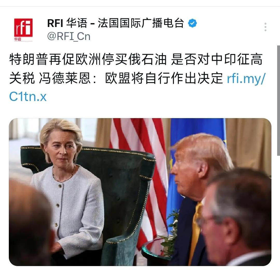 法广闻今天(9月22日)报道:“特朗普再促欧洲停止购买俄罗斯石油,是否对中印征高