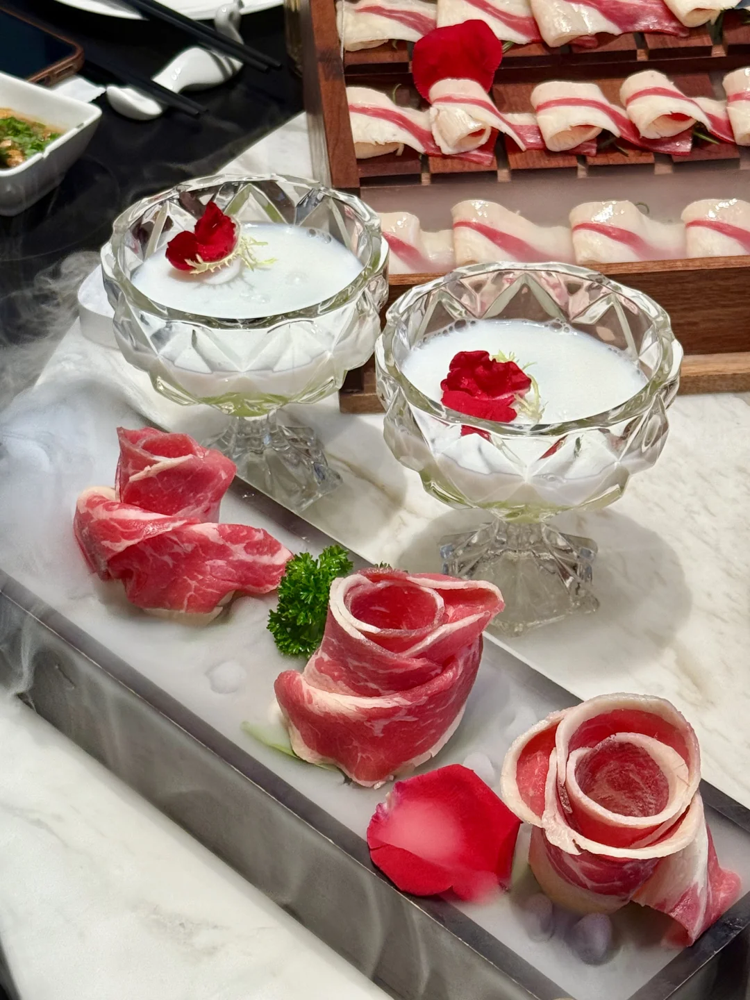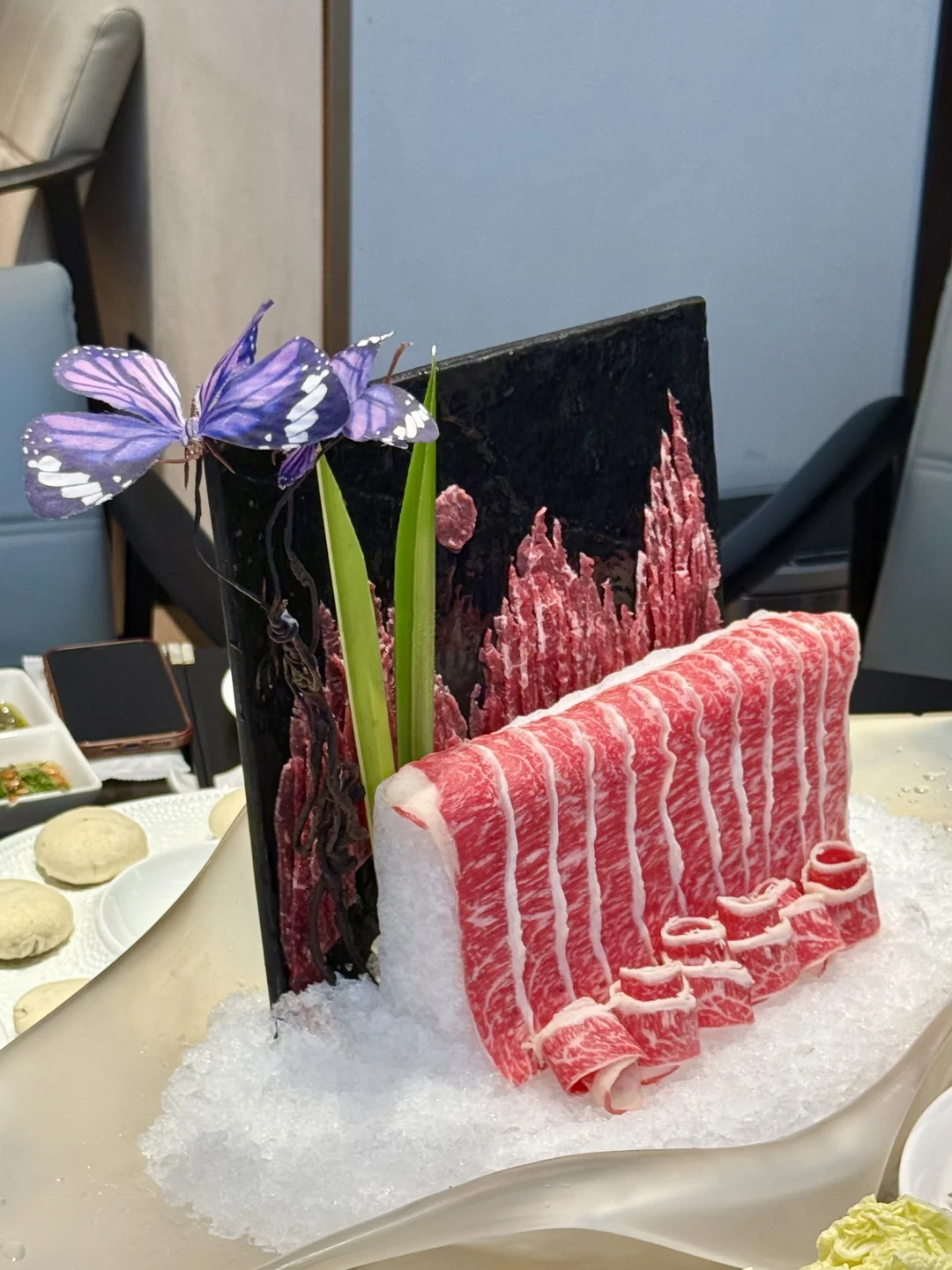 🥩食材更是惊艳!牛肉来自自家牧场,雪花纹理超漂亮,品质直逼日本和牛!入口鲜嫩多汁,还有淡淡的奶香味,每一口都超满足!