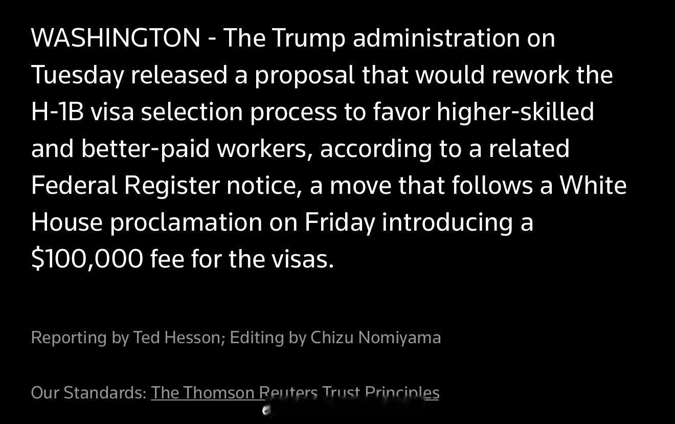 川普政府今天将公布了一项提案,调整 H-1B 签证的抽签流程,优先考虑技能更高、