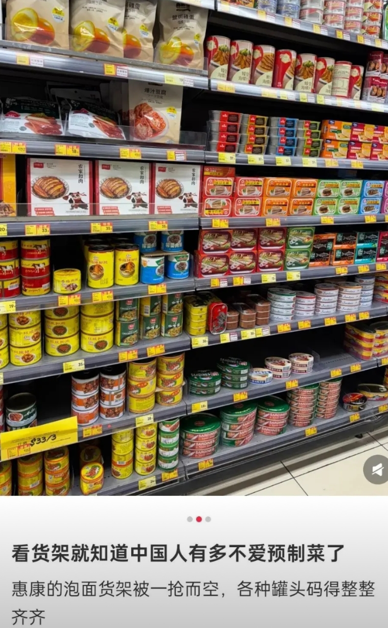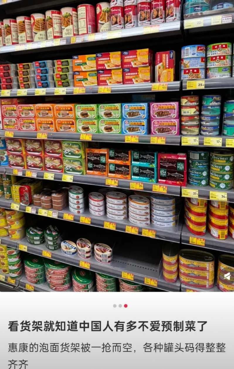 难怪罗永浩能得到广大网友的支持, 这次桦加沙台风登陆广东, 大家纷纷提前跑到超市囤货来应对, 货架上的预制食品中也就方便面卖得比较多, 那些食品罐头还整整齐齐在货架上, 看来大家对于预制菜是真的热爱不起来呀。