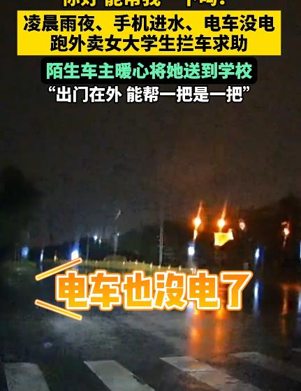 “暖心!”9月21日,河北,一位男子雨夜开车途中,突遇一位女大学生拦车:“能帮我一下吗?”女孩称她晚上出来跑外卖,电车没电了,手机进水也充不进电了,没法回学校,接下来男子一个举动,令很多人湿了眼眶。网友:国人骨子里的善良,好人好报! 有些温暖,无关终点,它就发生在半路上,比如河北邯郸那个被暴雨冲刷的凌晨一点。一束刺破雨幕的双闪灯,成了那晚最让人心安的信号。 故事的主角,一个刚退伍不久的史先生,另一个是河北工程大学的大四姑娘。她太难了,勤工俭学到深夜,结果电动车彻底趴窝,手机也进了水,直接黑屏。 在一个连路灯都断断续续的路段,她一个人,在瓢泼大雨里站了二十多分钟。浑身湿透,双腿麻木,那种害怕和无助,隔着屏幕都能感觉到。她试着挥手拦车,带着哭腔解释自己的学生身份,生怕被人误解。 史先生看到了,一脚刹车就停了下来。他连说了三遍“快上车”,女孩却犹豫了,怕自己一身的雨水弄脏他的车座,小心翼翼地只想坐在座位边缘。史先生那句“人要紧”,比什么都管用。 真正的高潮,不是车子启动的那一刻。是女孩刚坐稳,突然想起电动车钥匙没拔。就在她准备冒雨冲回去时,史先生不仅让她快去快回,更是在原地,稳稳地按下了双闪警示灯。 就是这个动作,让无数网友破防了。开车送人是一种善意,但亮着双闪灯等待,是一种承诺。那闪烁的灯光仿佛在说:“别急,我一定在。”它把一个萍水相逢的帮助,瞬间变成了一份沉甸甸的守护。 想想看,女孩电动车筐里还放着没来得及吃的面包,那是她的晚饭。对于一个如此奔波的学生来说,这份在雨夜中“被等待”的安全感,价值千金。它解决了女孩的后顾之忧,让她不必在慌乱中做出选择。 这束光没有在那个雨夜熄灭。被路过的车拍下后,它在网上亮了。大家认出了史先生退伍军人的身份,赞叹这是“刻在骨子里的善良”。而他自己却说,这没什么,“换作部队的战友,都会停。” 女孩后来在朋友圈感慨陌生人的善意,史先生则在女孩坚持要干洗费时摆手拒绝,没留任何联系方式。这是一场完美的“双向奔赴”——她的坚持,等来了一束光;而他的担当,让这束光有了被看见的意义。 那束双闪灯,早就不只是一辆车的警示灯了,它更像一座灯塔,提醒着我们,最动人的善良,往往就藏在那些为你停留、为你等待的细节里。 信息来源:中国青年报视频发布