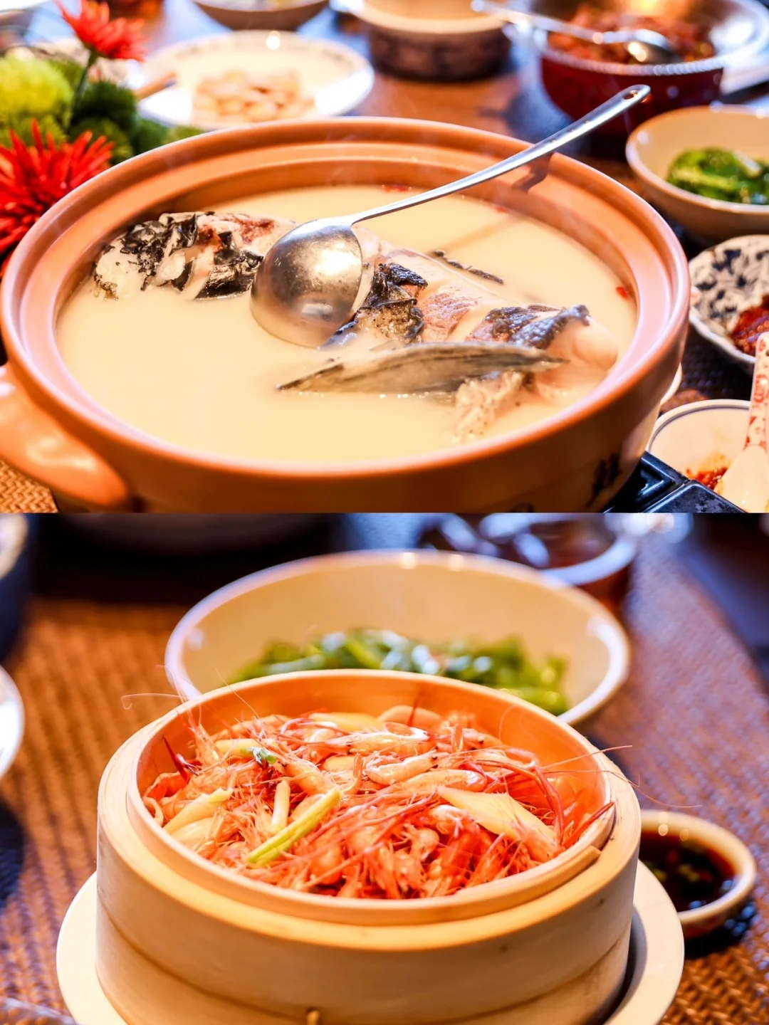 美食必吃鱼头汤:到了千岛湖,绝对不能错过的就是清蒸或红烧的大鱼头!鲜香滑嫩,完全没有腥味。