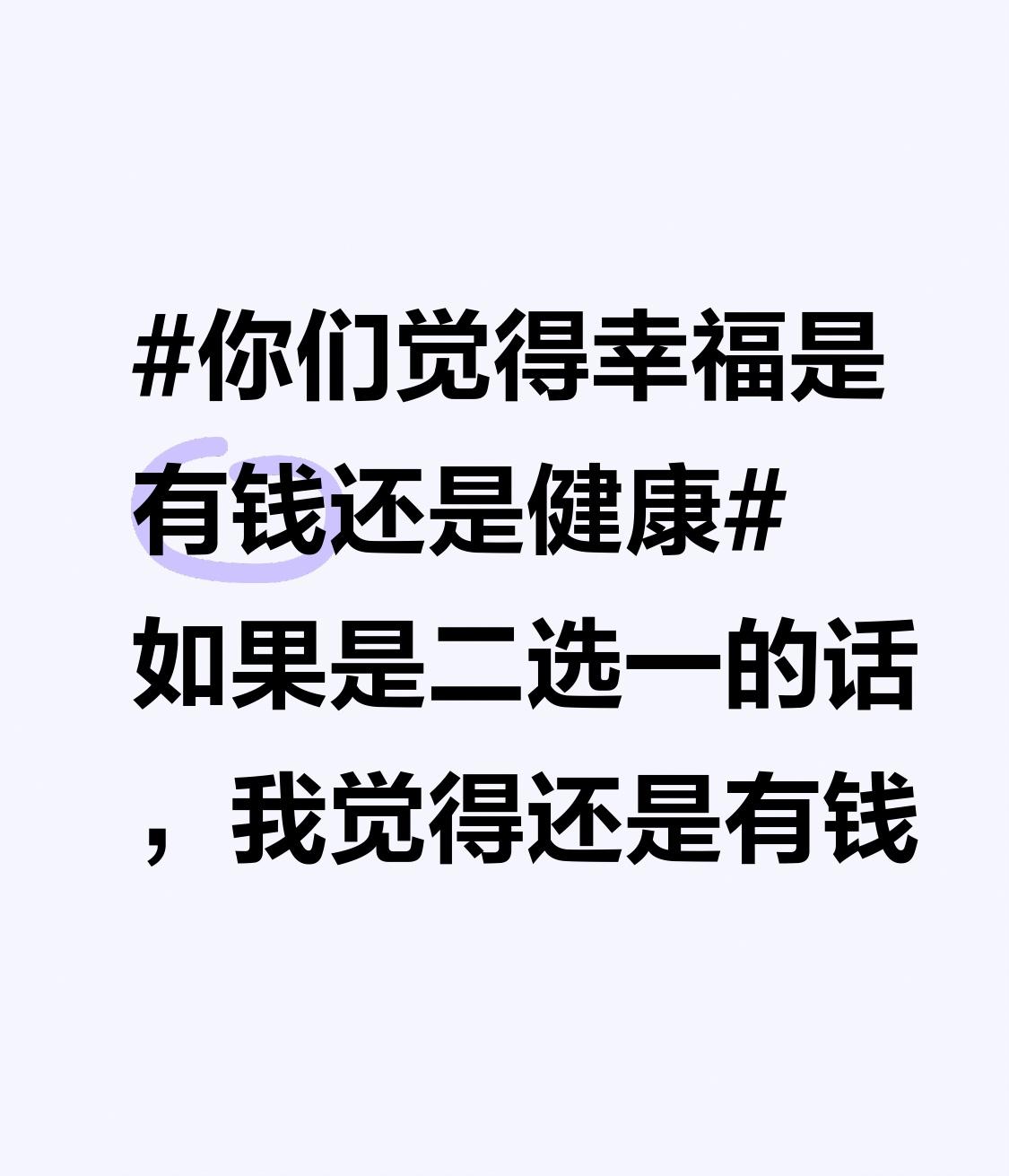 你们觉得幸福是有钱还是健康如果是二选一的话,我觉得还是有钱