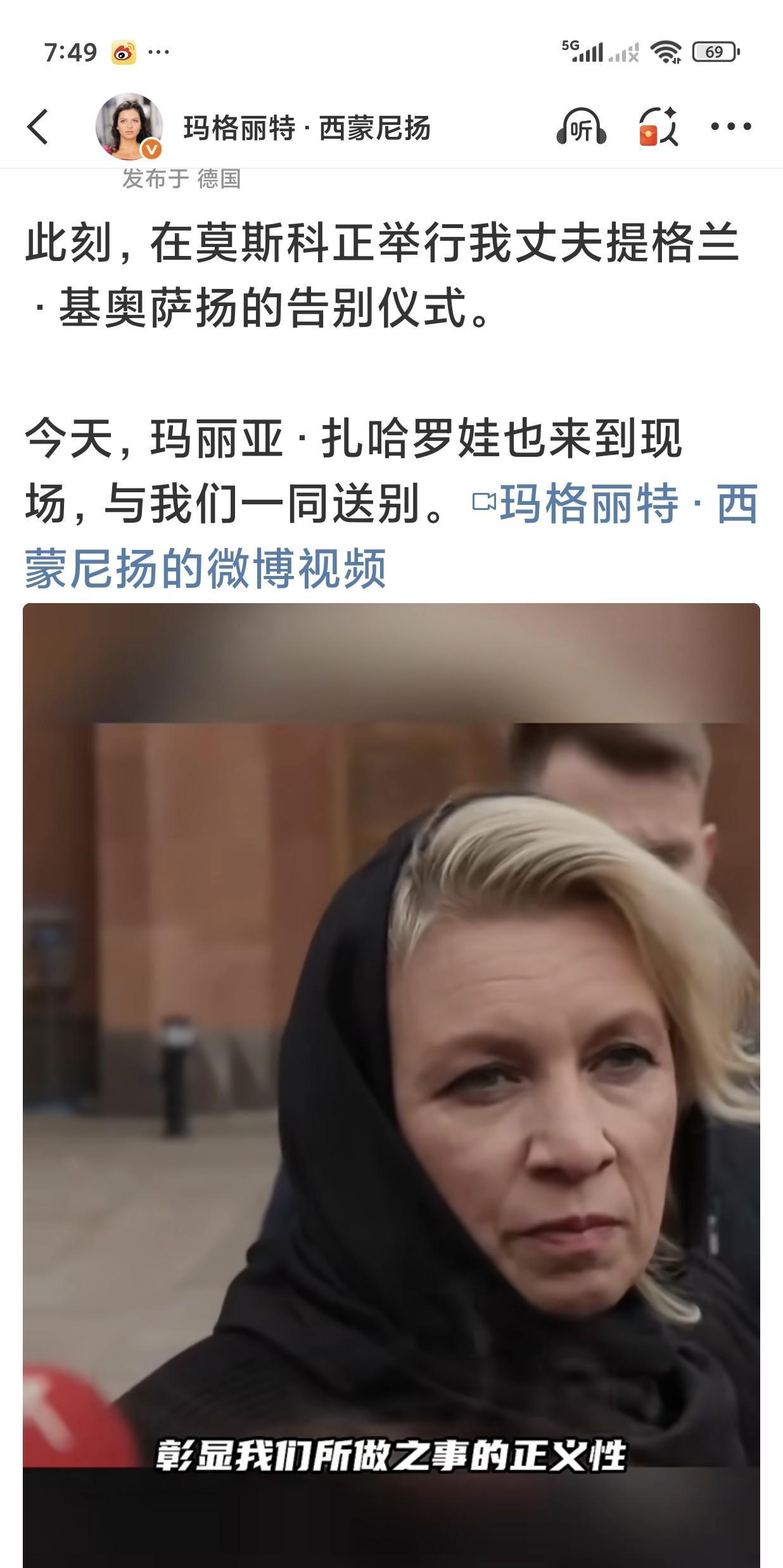 今日俄罗斯RT国际电视台总编辑玛格丽特·西蒙尼扬 的丈夫突然离世。 西蒙尼扬发文: 在莫斯科正举行我丈夫提格兰·基奥萨扬的告别仪式。 今天,玛丽亚·扎哈罗娃也来到现场,与我们一同送别。 另外值得一提的是,俄罗斯总统普京和总理米舒斯京也出席了告别仪式。