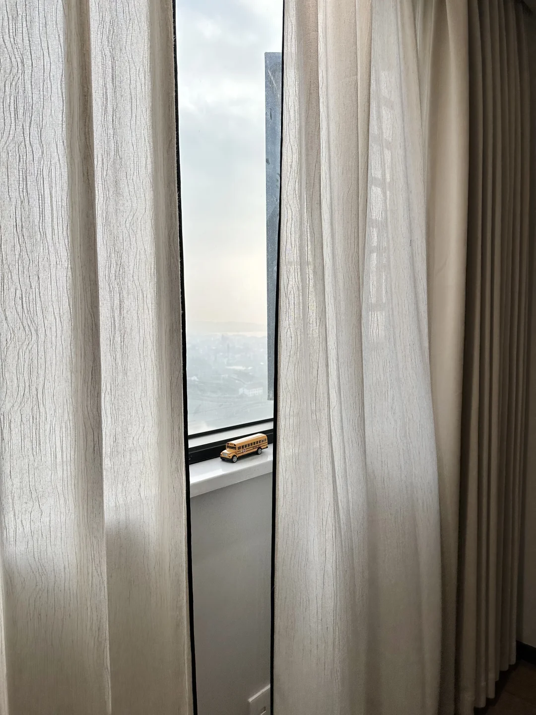 直到换上莫兰迪窗帘家的【雪颂】奶油泡芙色+【扶风纱】
