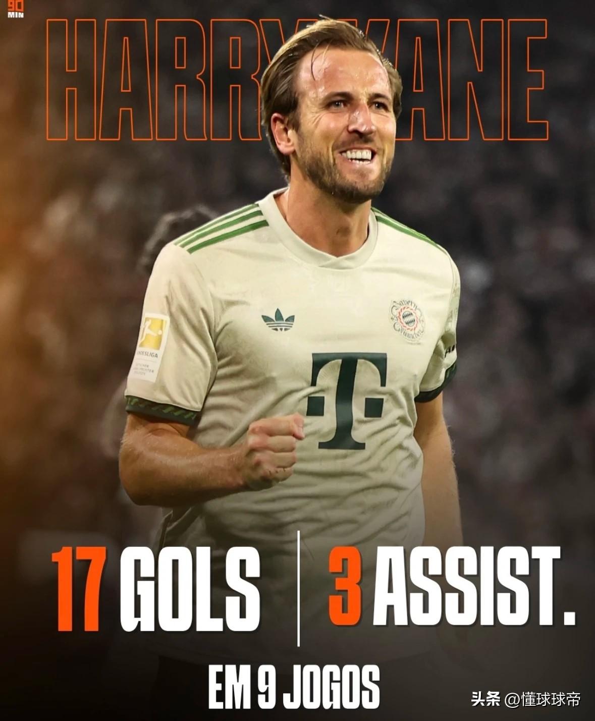 同样是9场比赛,凯恩打进17球3助攻,维尔茨却0球1助攻! 32岁的凯恩身价只