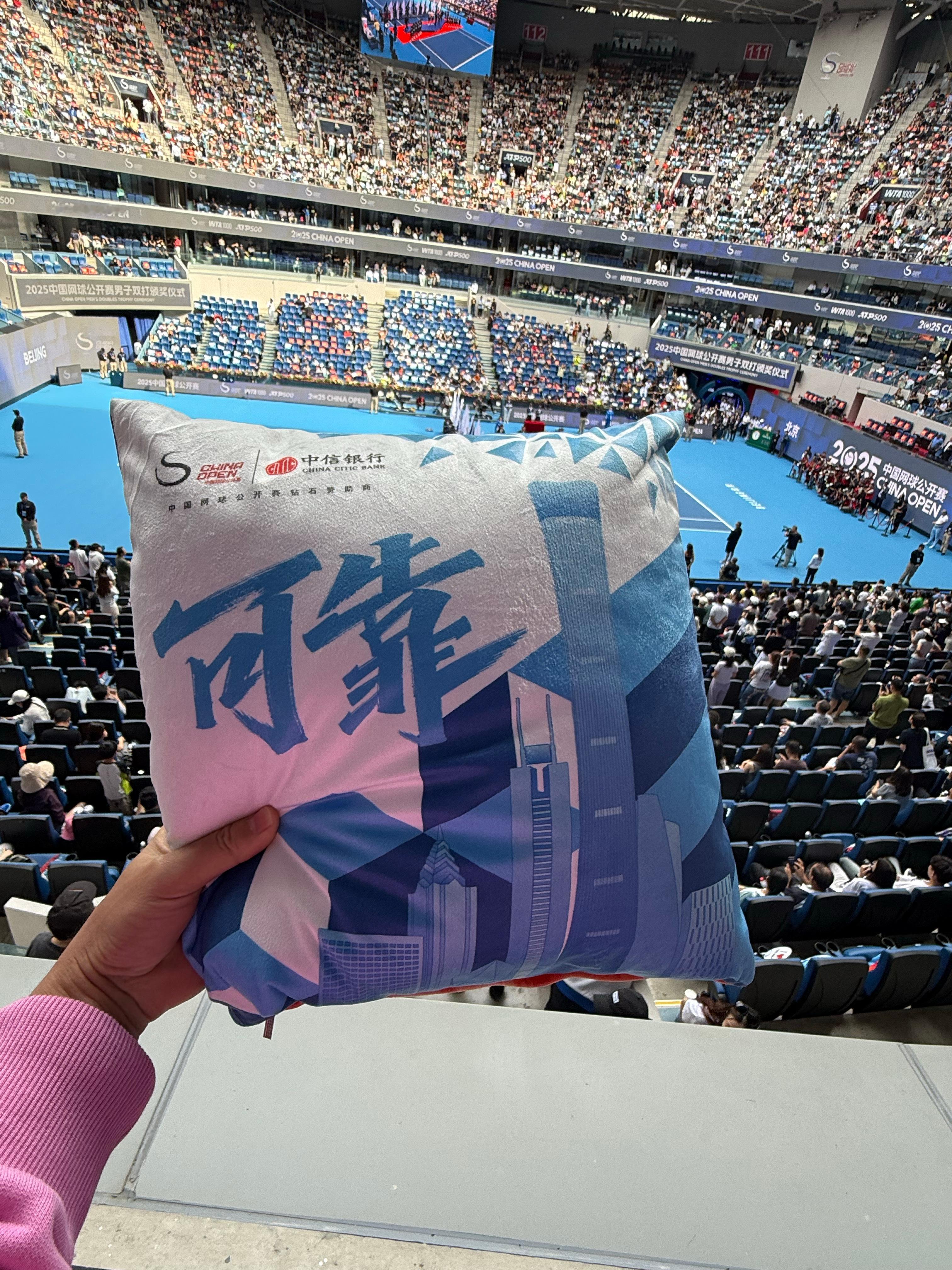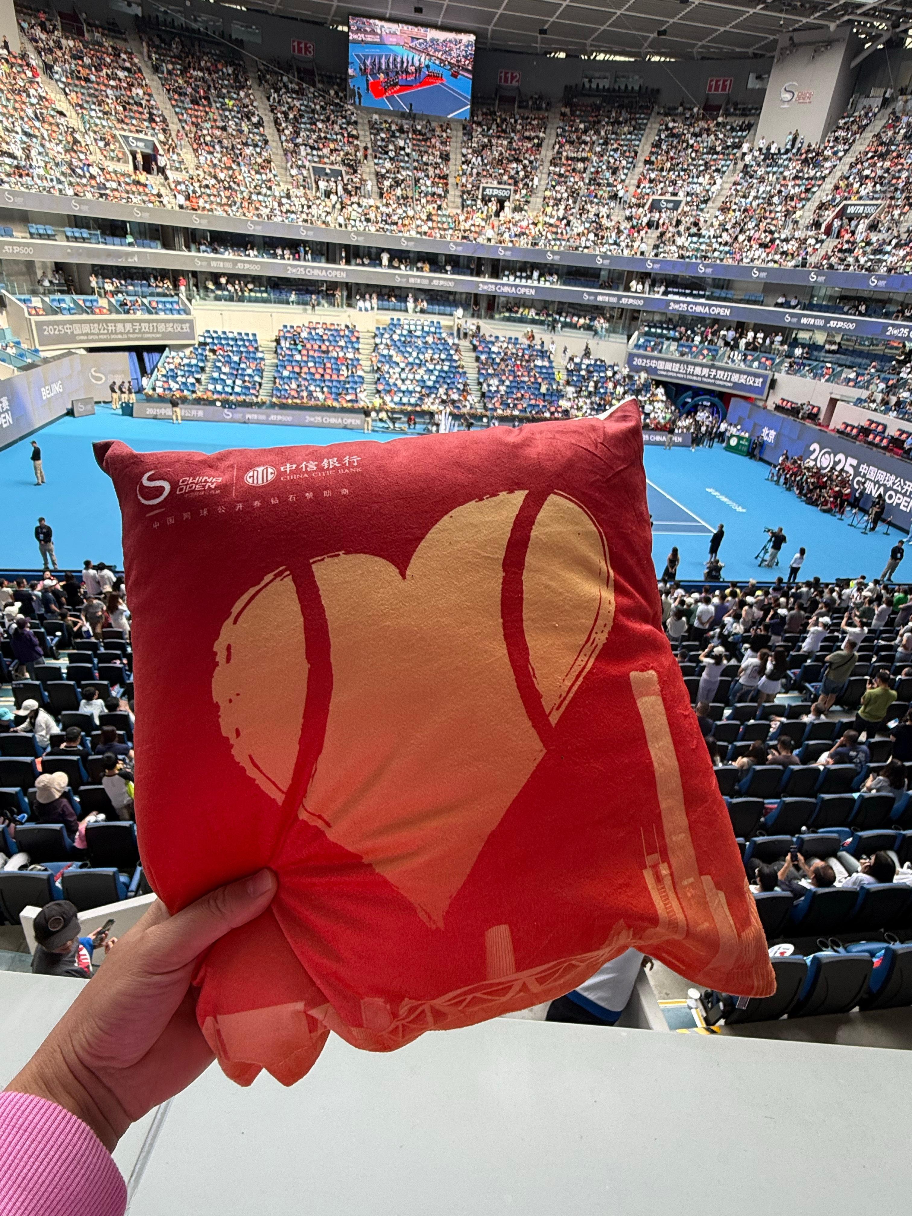 为庆祝十一国庆,中网为每一位进入钻石球场现场观赛的球迷准备了抱枕。