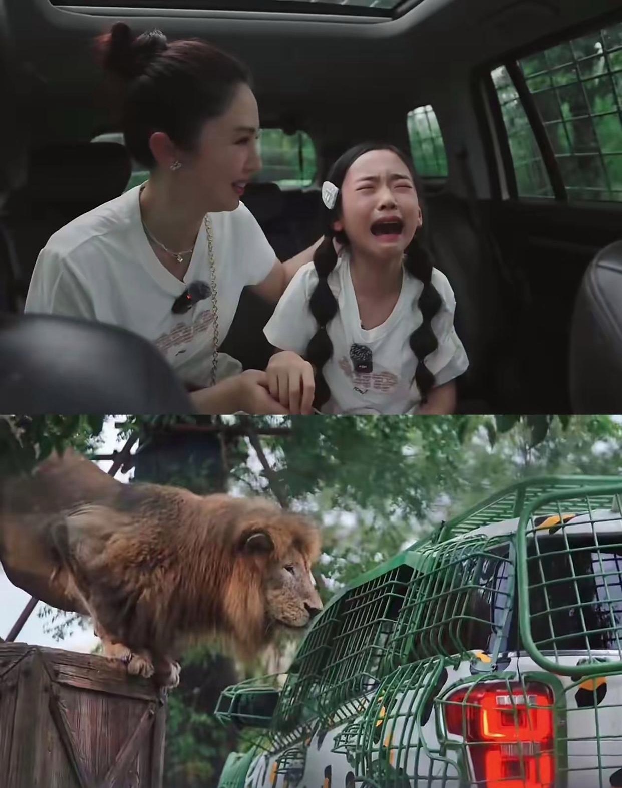 小酒窝和妈妈董璇去动物园玩时,坐在观光车里到猛兽区投喂狮子。没成想,狮子吃完她喂的肉后竟对着她吼了几声,小酒窝当场吓得嚎啕大哭,连董璇怎么安慰都没用。