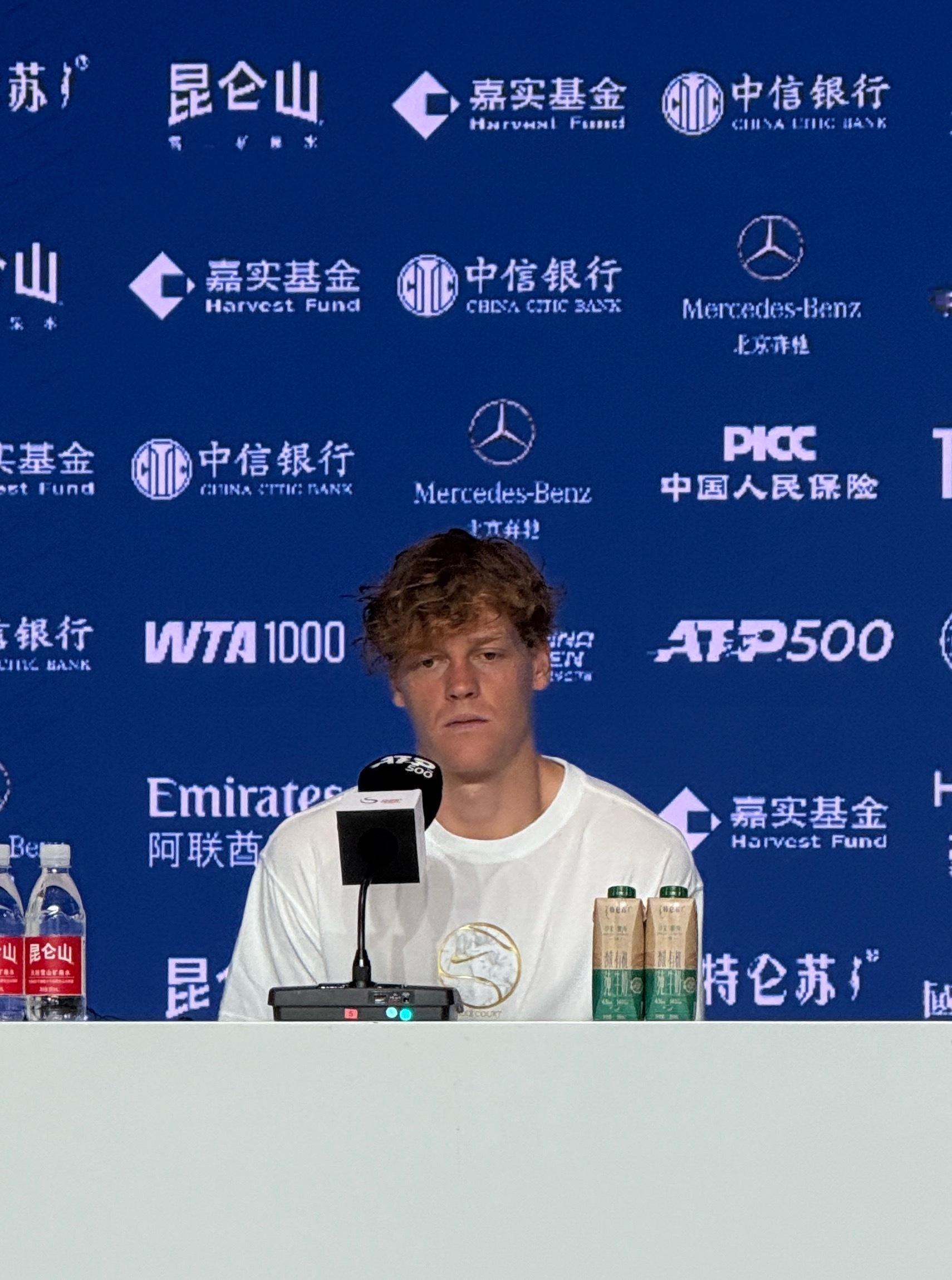 辛纳夺冠后,在发布会上,谈到今天在北京、在中网夺冠,他表示:“因为两年前中网的冠军是我职业生涯的转折点,今年又在这里留下了难忘的回忆,非常感谢这里观众的支持,所以在镜头上写下了谢谢!”