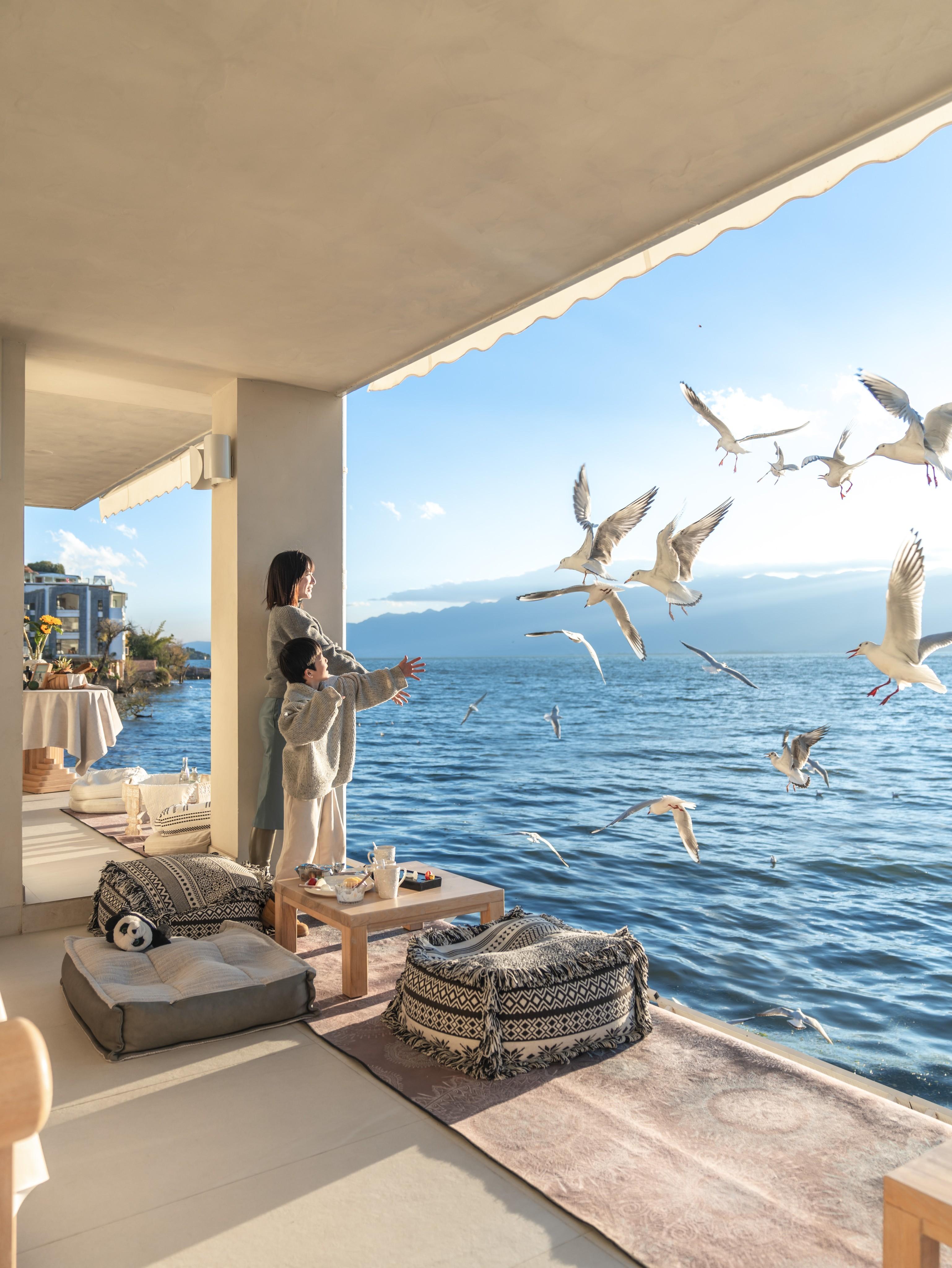 这边有很多的咖啡厅,都可以等到海鸥的光临。