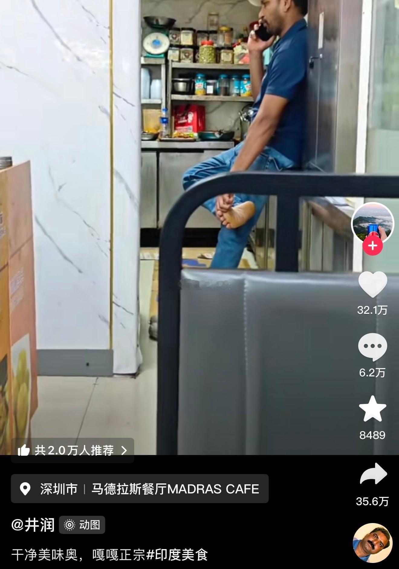 网友分享位于深圳一家印度餐厅引发网友热议,点赞32万,评论6.2万。