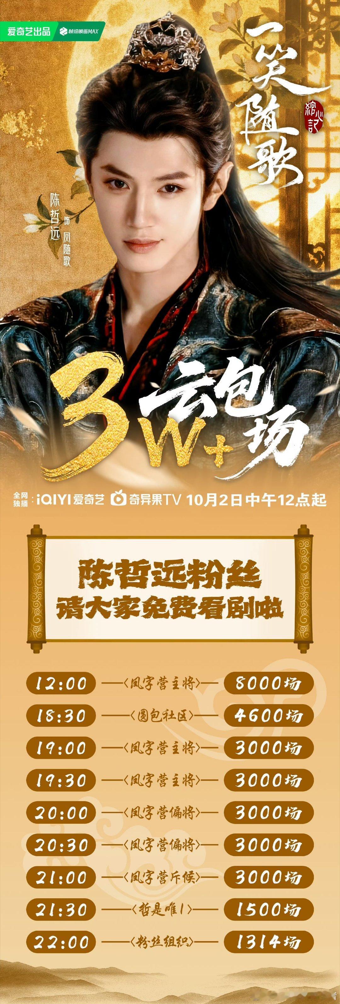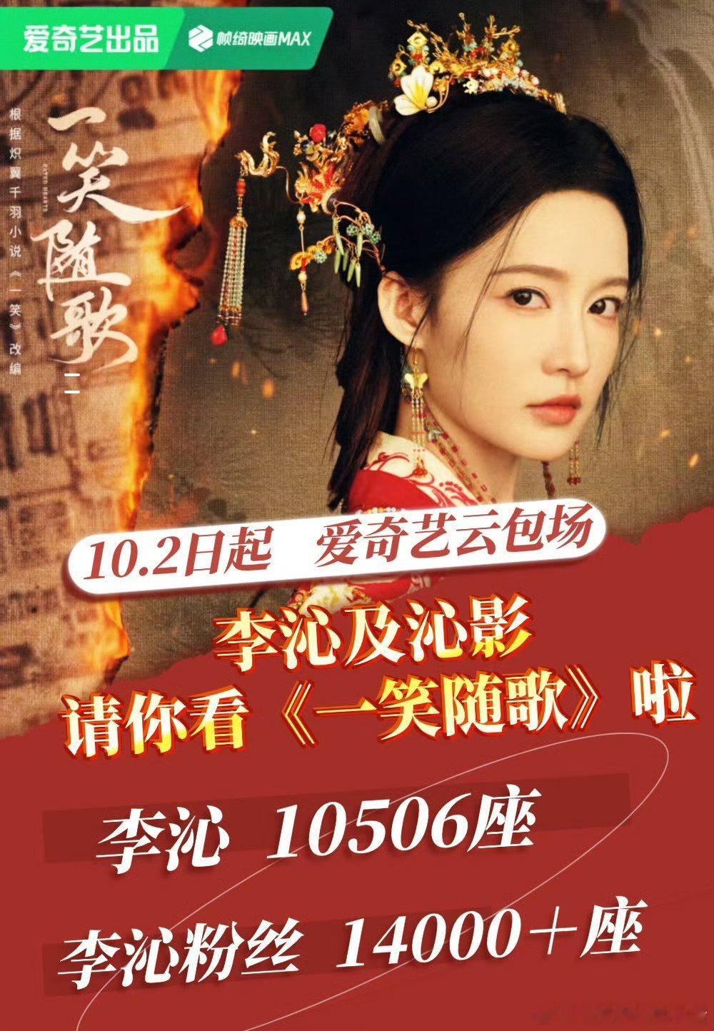 李沁陈哲远粉丝云包场一笑随歌都好给力,明日开看👀